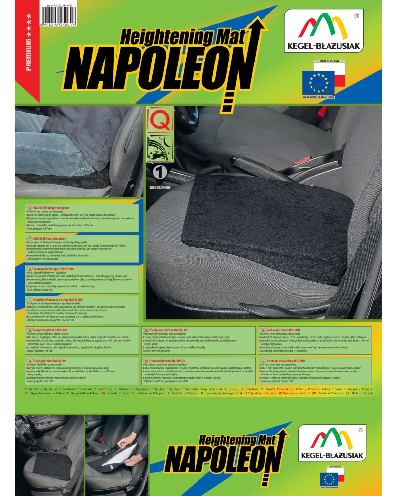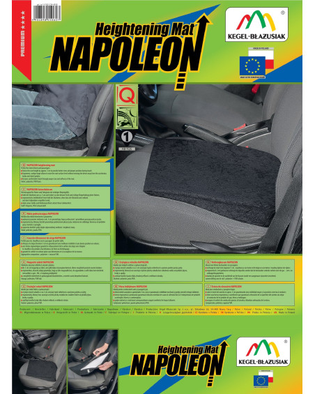 Le coussin rehausseur NAPOLEON sera idéal pour des conducteurs de taille moyenne, mais également pour des passagers. Il rehausse l'assise de 3 cm environ en assurant ainsi une meilleure visibilité au conducteur. Il vous permettra d'ajuster votre position de conduite tout en la corrigeant pour plus grande sécurité. Grâce à sa forme ergonomique d'onde, spécifiquement adoptée, le coussin n'éloigne pas le conducteur des pédales, mais corrige la position de conduite et la rend confortable et agréable.
