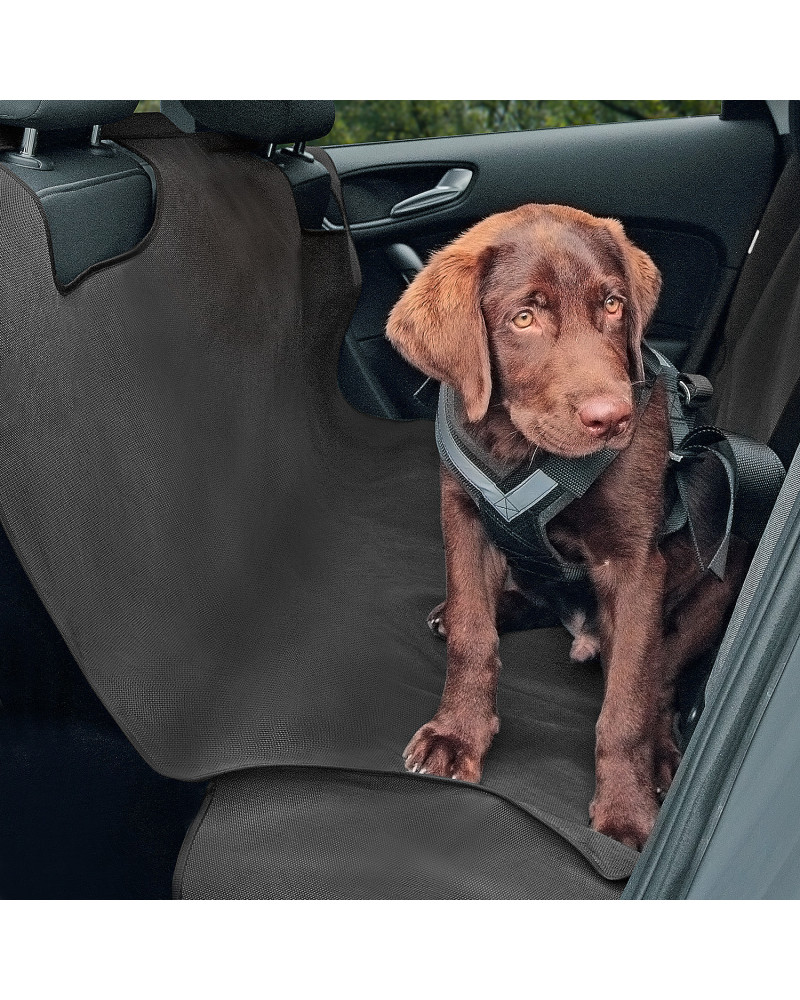 C'est un produit très pratique qui protège le siège arrière de la boue, de la crasse et des poils du chien si difficile de les éliminer. La housse est faite d'un matériau d'une grande densité, difficile à percer, très solide, antiallergique et sans odeur. Le matériau, difficilement perméable, résiste à l'infiltration des liquides et n'absorbe pas de désagréables odeurs. Ce produit protège parfaitement toute la surface de la banquette arrière, y compris ses parties latérales particulièrement exposées aux dégâts lors de l'entrée ou la sortie du chien de la voiture. Le tapis forme un genre de hamac en couvrant l'espace entre les fauteuils avant et la banquette. Le chien peut y coucher confortablement évitant ainsi de se cogner ou d'autres lésions. La couverture de l'espace entre les fauteuils avant et la banquette empêche le chien de passer en avant de la voiture augmentant ainsi la sécurité de voyage autant à vous qu'au chien. Les coloris foncés iront bien avec tout intérieur de la voiture, le vôtre aussi.