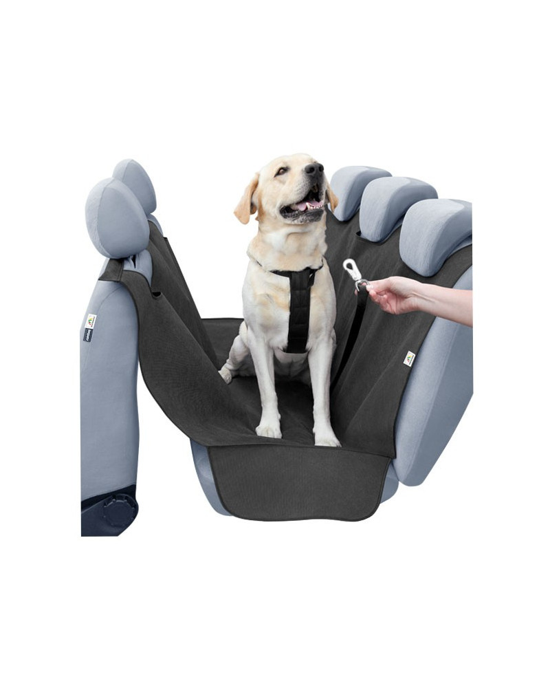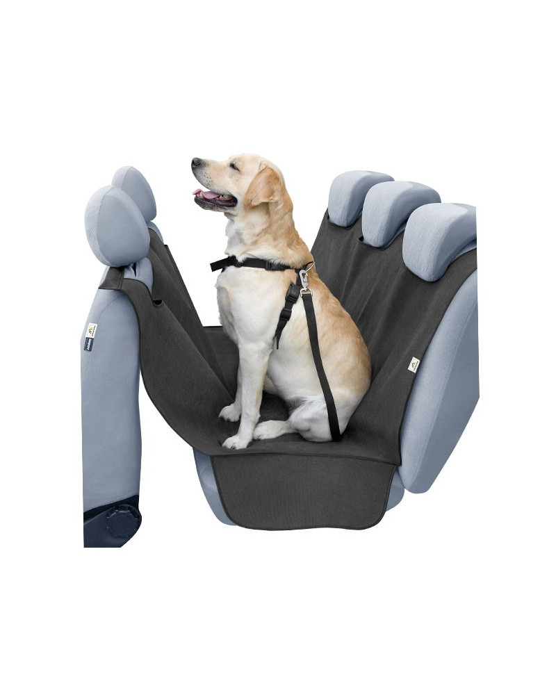 C'est un produit très pratique qui protège le siège arrière de la boue, de la crasse et des poils du chien si difficile de les éliminer. La housse est faite d'un matériau d'une grande densité, difficile à percer, très solide, antiallergique et sans odeur. Le matériau, difficilement perméable, résiste à l'infiltration des liquides et n'absorbe pas de désagréables odeurs. Ce produit protège parfaitement toute la surface de la banquette arrière, y compris ses parties latérales particulièrement exposées aux dégâts lors de l'entrée ou la sortie du chien de la voiture. Le tapis forme un genre de hamac en couvrant l'espace entre les fauteuils avant et la banquette. Le chien peut y coucher confortablement évitant ainsi de se cogner ou d'autres lésions. La couverture de l'espace entre les fauteuils avant et la banquette empêche le chien de passer en avant de la voiture augmentant ainsi la sécurité de voyage autant à vous qu'au chien. Les coloris foncés iront bien avec tout intérieur de la voiture, le vôtre aussi.