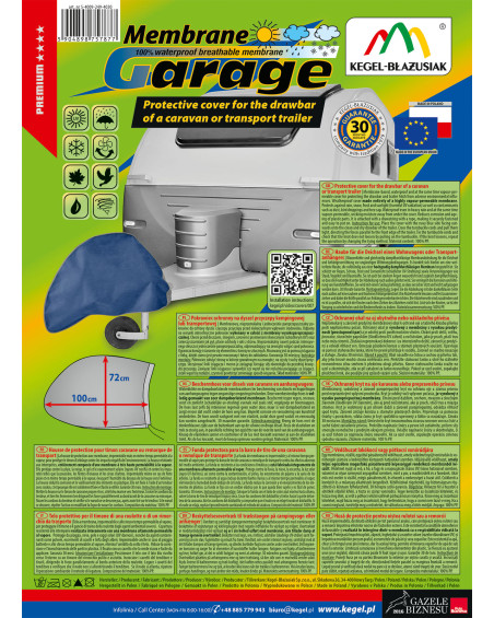 La housse de protection imperméable qui protège le timon d’une caravane ou d’une remorque de transport, tout au long de l’année, contre les impacts négatifs de l'environnement. Elle protège contre la pluie (également aigre), la neige et le givre, la poussière, la fiente d'oiseaux, les feuilles et les jus d'arbres ainsi que le soleil (rayons UV). Elle limite la corrosion. La housse est bien et solidement fixée à l’aide d’un bord-côte élastique avec un cordon, grâce à quoi elle peut être utilisée en toute sécurité, même en cas de vent fort.