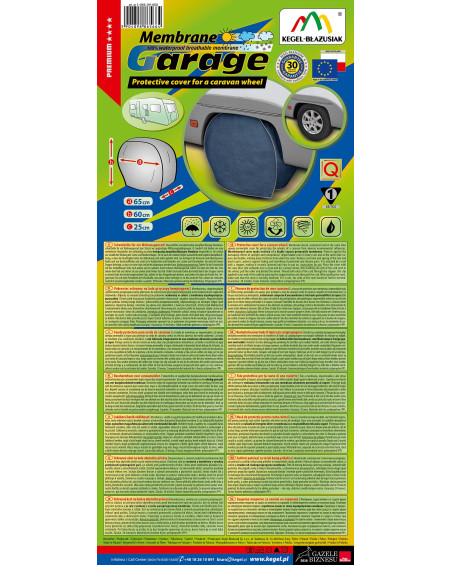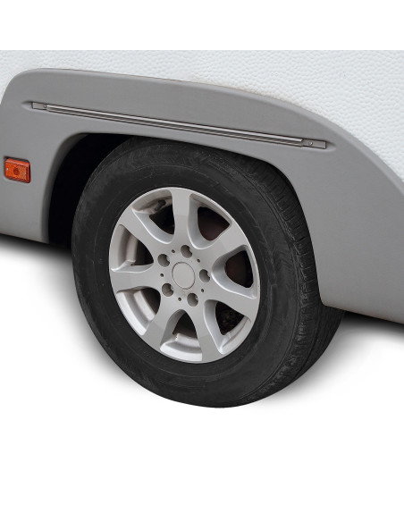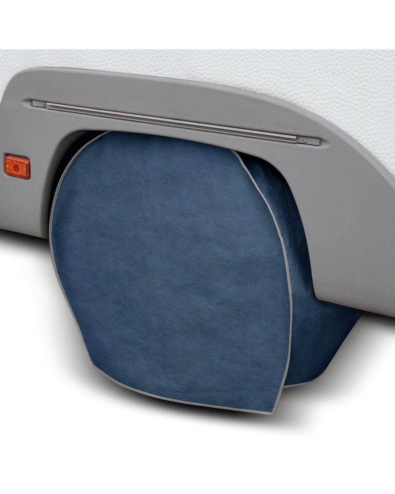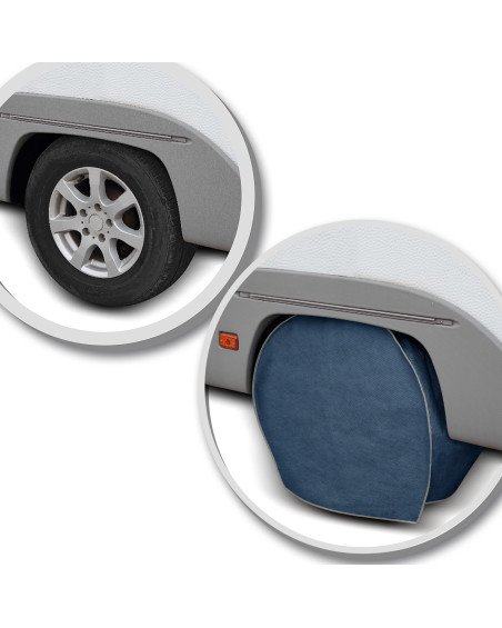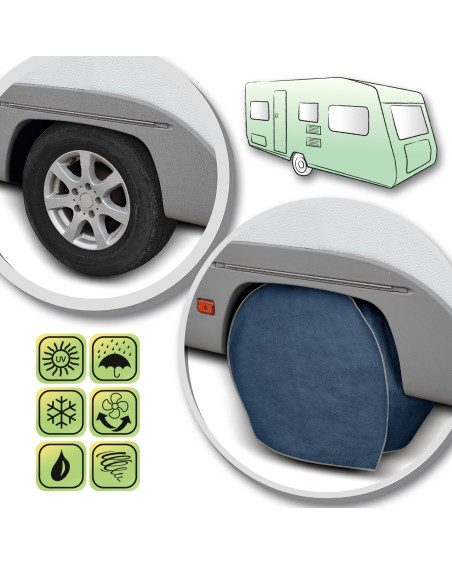 La housse de protection avec membrane, imperméable mais en même temps perméable à la vapeur, pour protéger la roue de caravane contre les impacts négatifs de l'environnement. La housse résistante aux intempéries, entièrement composée d'une membrane à très haute perméabilité à la vapeur. Elle protège contre les effets néfastes des rayons de soleil et des précipitations atmosphériques. Imperméable même en cas de forte pluie et en même temps perméable à la vapeur, évacuant l'humidité du dessous de la housse vers l'extérieur. La housse réduit la corrosion et le vieillissement du pneu et des éléments en plastique, elle protège contre la décoloration et le ternissement du vernis et des éléments chromés. Elle est fixée à l’aide d'un cordon avec stoppeur, c’est pourqui elle est solidement fixée et facile à mettre.