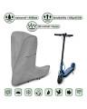Garer la trottinette électrique à l'abri du vent, de manière à éviter qu'elle ne se renverse. Mettre la housse sur la trottinette hors tension, propre et sèche, la face imprimée vers l'extérieur, puis attacher la housse sous la trottinette à l'aide de bandes Velcro cousues dans la partie inférieure, à l’intérieur de la housse. Il faut bien s’assurer que les deux paires de bandes Velcro situées sous la trottinette sont bien attachées l'une à l'autre. Ne pas utiliser la housse lors du chargement de la batterie de la trottinette ou lors du transport de la trottinette sur les porte-bagages extérieurs des véhicules. Ne pas utiliser la housse si elle est abîmée ou si elle fuit. Utiliser la housse uniquement pour le rangement occasionnel de la trottinette électrique garée à l'abri du vent, de manière à éviter qu'elle ne se renverse.