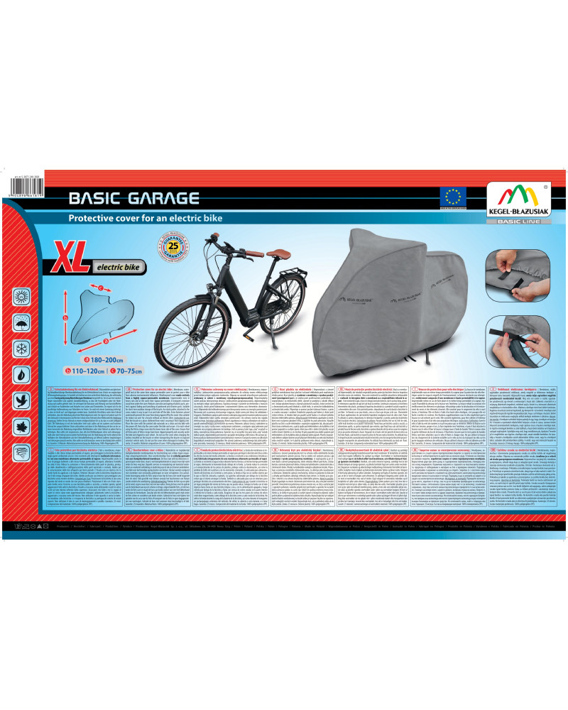 Garer le vélo à l'abri du vent de manière à ce qu'il ne puisse pas se renverser. Mettre la housse sur le vélo hors tension, propre et sec, la face imprimée vers l'extérieur, et puis il faut attacher la housse sous le vélo et fixer la housse à chaque roue à l'aide de bandes 'Velcro' cousues dans la partie inférieure du bas de la housse. Il faut bien s’assurer que les trois paires de bandes Velcro sont bien attachées sous le vélo et fixées à chaque roue. Ne pas utiliser la housse lors du chargement de la batterie installée sur le vélo ou lors du transport du vélo sur les porte-bagages extérieurs des véhicules. Ne pas utiliser la housse si elle est abîmée ou si elle fuit.