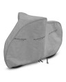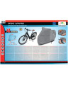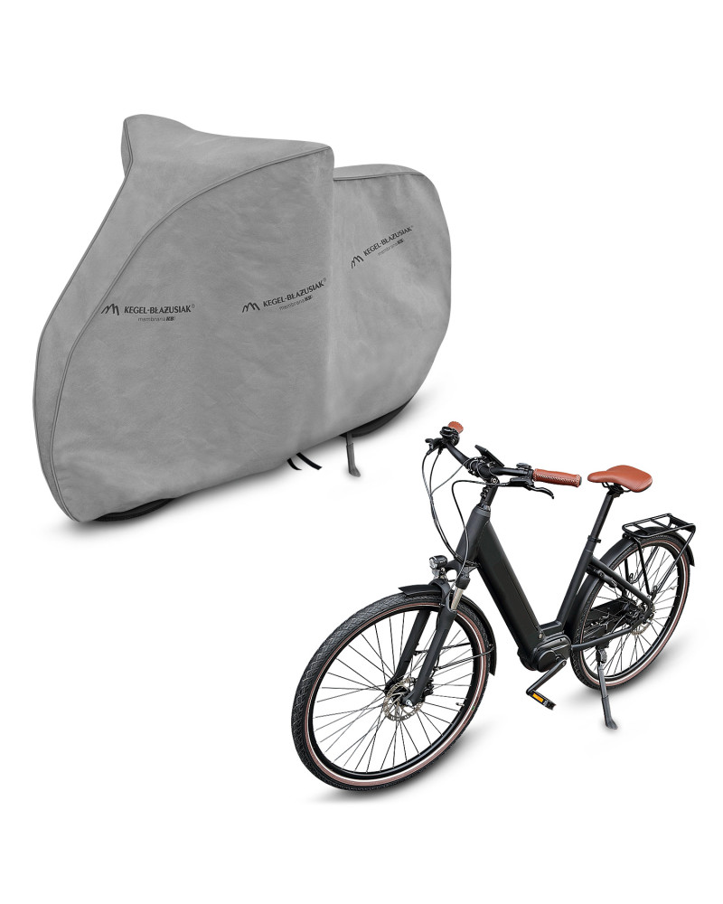 La housse de membrane, imperméable mais en même temps perméable à la vapeur pour la protection du vélo électrique contre les impacts négatifs de l'environnement. La housse résistante aux intempéries, entièrement composée d'une membrane à haute perméabilité à la vapeur. Imperméable même en cas de forte pluie et en même temps perméable à la vapeur, évacuant l'humidité du dessous de la housse vers l'extérieur. La housse réduit la corrosion et le vieillissement des éléments en plastique, elle protège contre la décoloration et le ternissement du vernis et des éléments chromés. Elle convient pour le rangement extérieur du vélo à court terme. Elle est fixée à l’aide d'un bord-côtes élastique, c’est pourqui elle est facile à mettre et à enlever. Des attaches supplémentaires sur les roues et une fixation sous le vélo empêchent que la housse ne soit arrachée par le vent. Elle convient également, pour être utilisée à l’intérieur et pour la protection d’un vélo sans propulsion électrique.