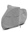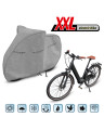 La housse de membrane, imperméable mais en même temps perméable à la vapeur pour la protection du vélo électrique contre les impacts négatifs de l'environnement. La housse résistante aux intempéries, entièrement composée d'une membrane à haute perméabilité à la vapeur. Imperméable même en cas de forte pluie et en même temps perméable à la vapeur, évacuant l'humidité du dessous de la housse vers l'extérieur. La housse réduit la corrosion et le vieillissement des éléments en plastique, elle protège contre la décoloration et le ternissement du vernis et des éléments chromés. Elle convient pour le rangement extérieur du vélo à court terme. Elle est fixée à l’aide d'un bord-côtes élastique, c’est pourqui elle est facile à mettre et à enlever. Des attaches supplémentaires sur les roues et une fixation sous le vélo empêchent que la housse ne soit arrachée par le vent. Elle convient également, pour être utilisée à l’intérieur et pour la protection d’un vélo sans propulsion électrique.