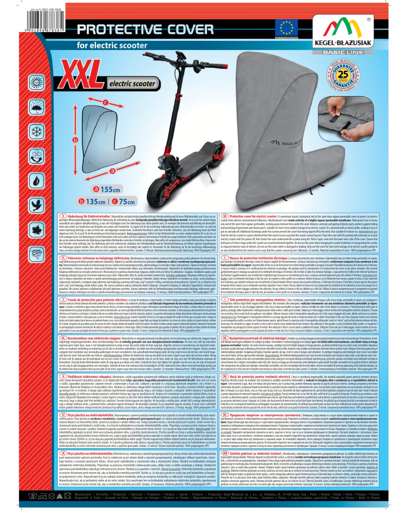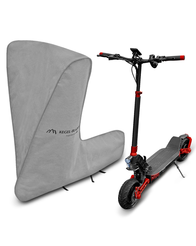 La housse de protection avec membrane, imperméable mais en même temps perméable à la vapeur, pour protéger la trottinette électrique contre les impacts négatifs de l'environnement. La housse résistante aux intempéries, entièrement composée d'une membrane à très haute perméabilité à la vapeur. Imperméable même en cas de forte pluie et en même temps perméable à la vapeur, évacuant l'humidité du dessous de la housse vers l'extérieur. La housse réduit la corrosion et le vieillissement des éléments en plastique, elle protège contre la décoloration et le ternissement du vernis et des pièces chromées. Elle convient parfaitement pour le stockage occasionnel de la trottinette électrique à l’extérieur. Elle est fixée à l'aide d'un tendeur élastique, ce qui permet de l'enfiler et de l'enlever facilement. Des fixations supplémentaires sous la trottinette empêchent que la housse ne soit enlevée par le vent. La housse convient également pour être utilisée à l’intérieur.