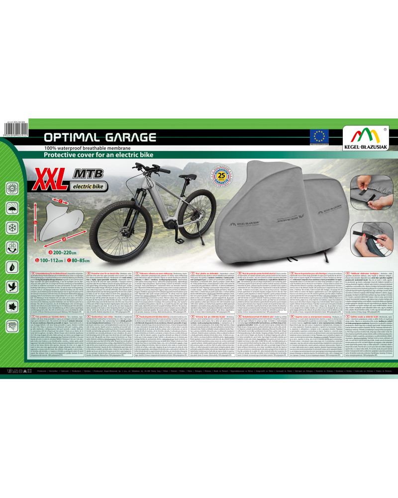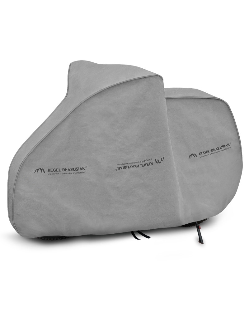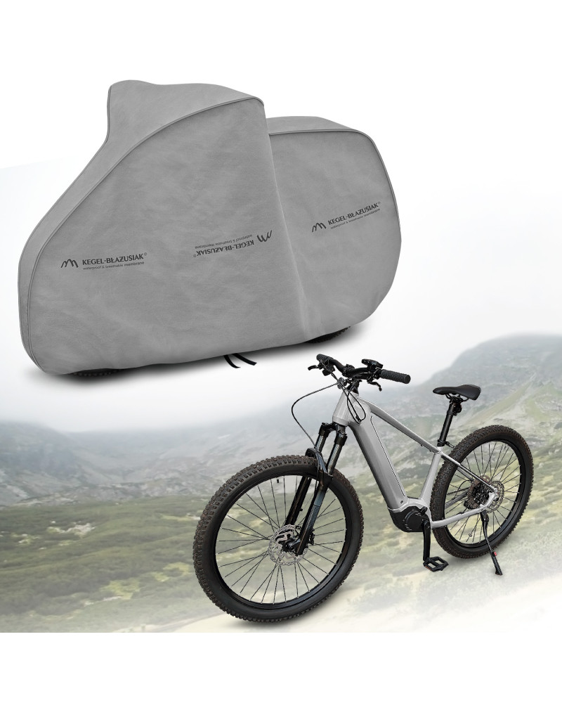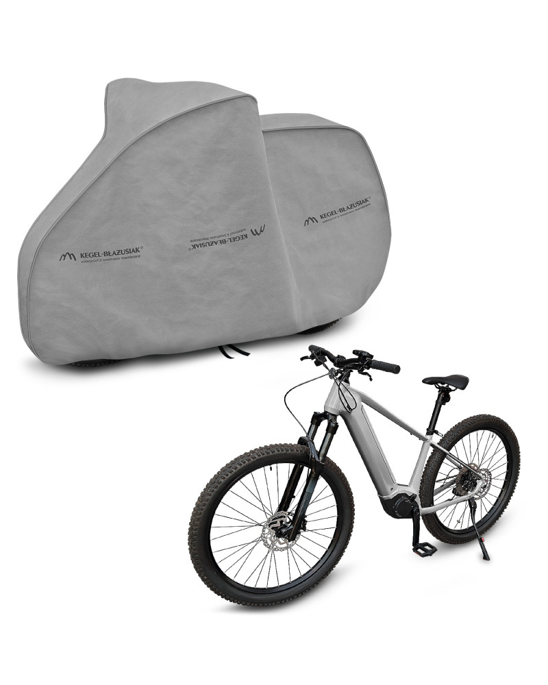 La housse de membrane, imperméable mais en même temps perméable à la vapeur pour la protection du vélo électrique contre les impacts négatifs de l'environnement. La housse résistante aux intempéries, entièrement composée d'une membrane à haute perméabilité à la vapeur. Imperméable même en cas de forte pluie et en même temps perméable à la vapeur, évacuant l'humidité du dessous de la housse vers l'extérieur. La housse réduit la corrosion et le vieillissement des éléments en plastique, elle protège contre la décoloration et le ternissement du vernis et des éléments chromés. Elle convient pour le rangement extérieur du vélo à court terme. Elle est fixée à l’aide d'un bord-côtes élastique, c’est pourqui elle est facile à mettre et à enlever. Des attaches supplémentaires sur les roues et une fixation sous le vélo empêchent que la housse ne soit arrachée par le vent. Elle convient également, pour être utilisée à l’intérieur et pour la protection d’un vélo sans propulsion électrique.