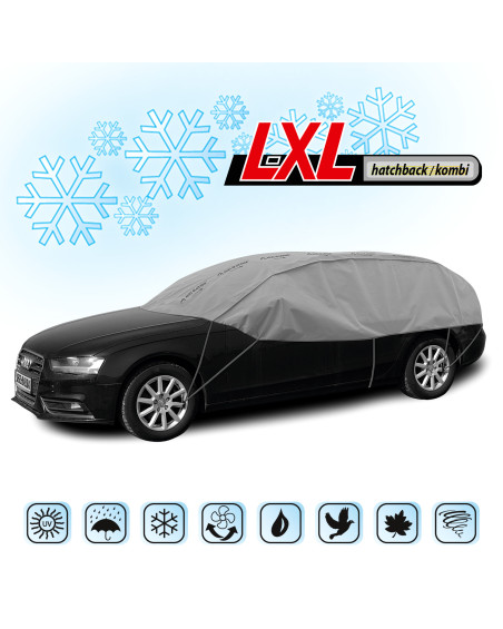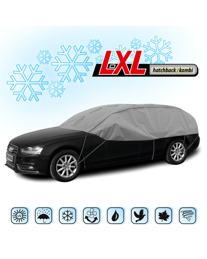 La demi housse OPTIMIO, en hiver, protègera le toit, les vitres et les rétroviseurs de votre voiture du givre et de la neige. Elle recouvrira également les poignées et les serrures les protégeant ainsi contre le gel. La housse ne colle pas à la voiture sous l'effet de gel. Elle fournira une protection efficace du suintement des arbres, des déjections d'oiseaux et du pollen, et même contre les rayons UV. Par conséquent, elle peut être appliquée en toutes saisons de l'année.