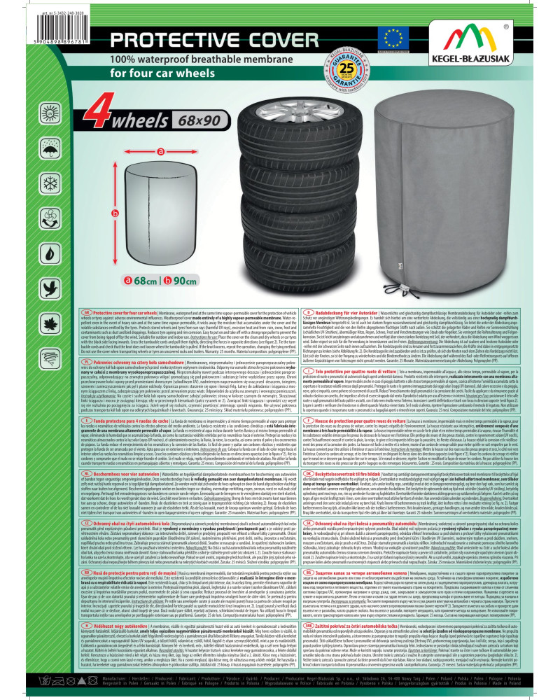 La housse à membrane, imperméable mais en même temps perméable à la vapeur, pour la protection des roues ou des pneus de voiture, contre les impacts négatifs de l’environnement. La housse résistante aux intempéries, entièrement composée d’une membrane à très haute perméabilité à la vapeur. La housse imperméable même en cas de forte pluie et en même temps perméable à la vapeur, évacue l’humidité et les substances volatiles émises par les pneus du dessous de la housse vers l’extérieur. Elle protège des roues et des pneus stockés, contre le rayonnement solaire(UV nocifs), contre l’échauffement excessif et contre la pluie, la neige, le givre et les impuretés telles que la poussière, les fientes d’oiseaux. La housse réduit la corrosion et le vieillissement des pneus et la corrosion des jantes. La housse est facile à mettre et à enlever, munie d’un cordon de serrage solide pour éviter qu’elle ne soit emportée par le vent.