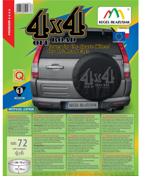 Housse de roue de secours pour 4x4 en cuir de PVC de haute qualité. Elle assure la fonction esthétique et la fonction de protection. Noire avec impression attrayante 4x4 à l'avant de la housse.