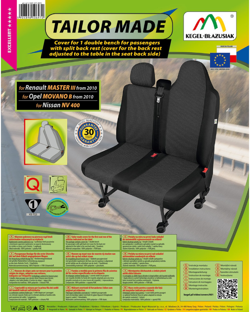 Produit de la célèbre société Kegel-Błażusiak. Le plus grand fabricant et exportateur de housses de voiture et de vêtements de travail. Fabriqué en Pologne, principalement à partir de matières premières polonaises, avec toutes les normes de qualité de l'Union européenne.