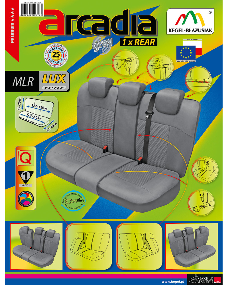 Les housses ARCADIA, fabriquées entièrement en velours de haute qualité, sont un produit qui peut impressionner tout automobiliste par son élégance. Le tissu de type Alcantara et sa couleur grise rehaussent encore cette sensation. Le tissu est solide, résistant, satisfait aux normes les plus sévères de résistance pour les tissus d'ameublement. Les parties latérales des housses sont doublées de la mousse PUR, ce qui fait que la housse est bien implantée sur le siège. La partie centrale est unie par la méthode à ultrason avec un tissu duveteux gaufré d'un délicat dessin. Nous fabriquons les housses Arcadia en gris qui est une couleur pratique et en même temps élégante. Cette couleur tendre, rehaussée d'un délicat dessin des parties latérales, la solidité du tissu très résistant, la facilité de l'entretien font de ces housses un produit exceptionnel qui sera assorti avec chaque voiture. Qui plus est, le rapport qualité prix est très intéressant : bien que le produit soit haut de gamme son prix est modéré.