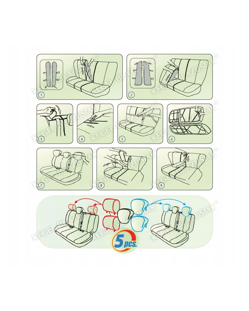 4. Mettre les housses les mieux adaptées pour les appuie-tête (d’autres housses sont excédentaires)