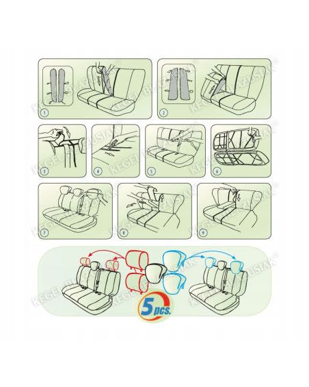 -fabriquées en version LUX/EXTRA, les housses possèdent une finition élégante, impeccable des ouvertures pour les appuie-têtes et de tous les passages pour les ceintures de sécurité (dont la troisième au milieu du siège arrière) et pour les cliquets de réception, de même qu'un système spécial de finition des parties latérales en cas de division de la housse pour la banquette arrière (Dividable System)