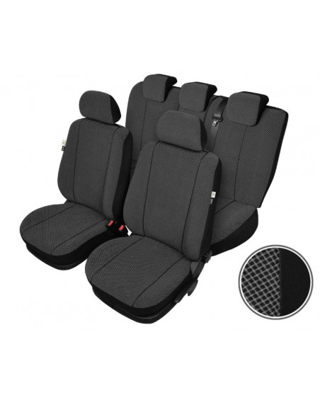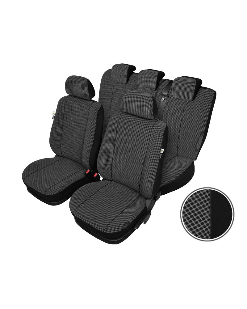 Les housses SCOTLAND garantissent à leurs utilisateurs un grand confort tout en leur assurant la sécurité. Elles sont fabriquées pour les modèles particuliers de voiture, en respect de tous les éléments de construction, aussi sont-elles parfaitement ajustées aux fauteuils et banquettes du modèle concerné. Elles sont faites d'un tissu difficilement inflammable d'ameublement de qualité, d'une grande densité et qui de ce fait satisfait aux normes les plus sévères de résistance à l'usure. Ainsi les housses assurent une protection exceptionnelle contre la détérioration et les salissures de vos sièges d'origine. De coloris foncés, tendres, égayés d'un discret dessin, ces housses apporteront du chic et de l'élégance à chaque intérieur de voiture. Leur construction innovante et la production sur mesure pour un modèle de marque particulier font qu'elles s'adaptent bien aux sièges. De plus, elles ne glissent pas, leur adhésion est parfaite grâce à une couche de mousse PUR du côté intérieur.