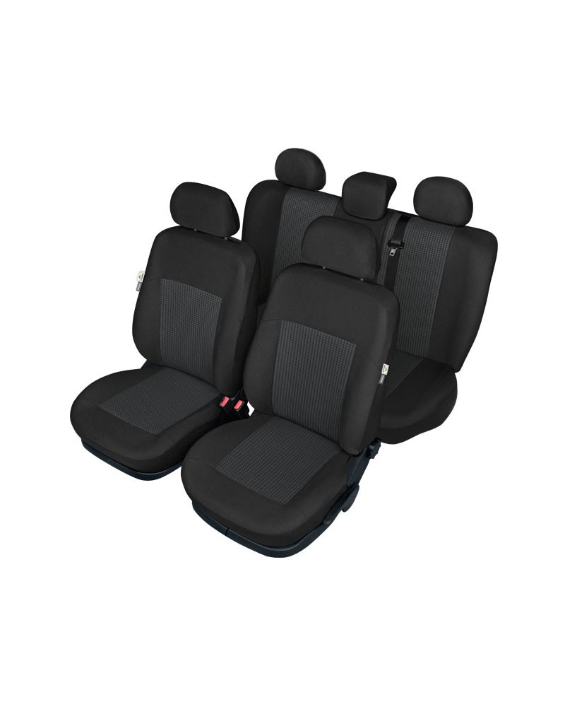 -le produit est vendu par ensembles . Il se compose de deux housses pour les sièges avant - intégrées à l'arrière, grâce à celaelles sont très esthétiques même depuis l'arrière ; une housse de canapé - équipée de découpes à fermeture éclair, permettant de monter la housse même dans le cas d'un canapé arrière divisé ; cinq housses pour les appuis-tête et les supports de fixation