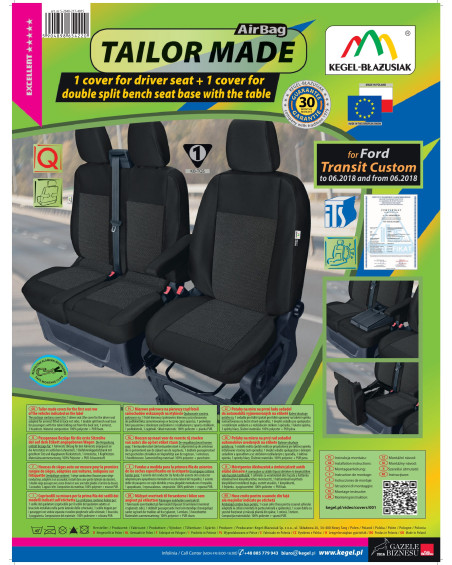 La garantie de 30 mois vous assure que vous achetez un produit de la plus haute qualité. Leur fabrication réalisée avec des matériaux de haute qualité garantit une longue durée de vie. L'offre s'adresse aux propriétaires d'une voiture qui souhaitent prendre soin de l'intérieur de leur véhicule et lui donner du style et de l'élégance Les housses de siège auto TAILORE MADE protègent très bien le revêtement d'origine de la voiture contre l'essuyage et les dommages, et le style classique de bon goût évoque des impressions esthétiques positives. Couleur tamisée - le noir avec une texture grise délicate à l'intérieur de la housse s'intègre parfaitement à l'intérieur de n'importe quelle voiture. Grâce à la structure spatiale appropriée et à l'adaptation spécifique à votre voiture, les housses auto s'adaptent parfaitement aux sièges.Le matériau adhère parfaitement aux sièges, remplaçant leur garniture originelle. L'ensemble est équipé de boucles en plastique spéciales et les accessoires sont cousus dans le matériau, ce qui permet de mettre la housse sans enlever les appuie-têtes et de faire des ouvertures supplémentaires.