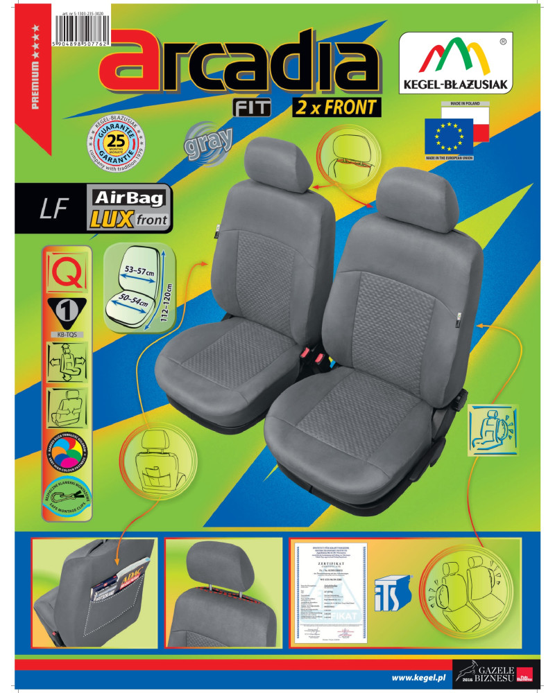 Les housses ARCADIA, fabriquées entièrement en velours de haute qualité, sont un produit qui peut impressionner tout automobiliste par son élégance. Le tissu de type Alcantara et sa couleur grise rehaussent encore cette sensation. Le tissu est solide, résistant, satisfait aux normes les plus sévères de résistance pour les tissus d'ameublement. Les parties latérales des housses sont doublées de la mousse PUR, ce qui fait que la housse est bien implantée sur le siège. La partie centrale est unie par la méthode à ultrason avec un tissu duveteux gaufré d'un délicat dessin. Nous fabriquons les housses Arcadia en gris qui est une couleur pratique et en même temps élégante. Cette couleur tendre, rehaussée d'un délicat dessin des parties latérales, la solidité du tissu très résistant, la facilité de l'entretien font de ces housses un produit exceptionnel qui sera assorti avec chaque voiture. Qui plus est, le rapport qualité prix est très intéressant : bien que le produit soit haut de gamme son prix est modéré.
