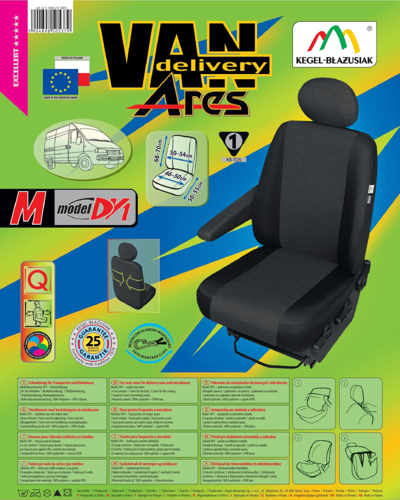 Produit de la célèbre société Kegel-Błażusiak. Le plus grand fabricant et exportateur de housses de voiture et de vêtements de travail. Fabriqué en Pologne, principalement à partir de matières premières polonaises, avec toutes les normes de qualité de l'Union européenne.