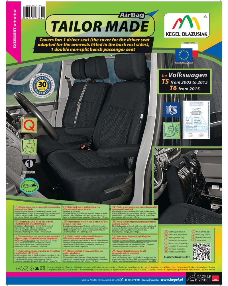 La garantie de 30 mois vous assure que vous achetez un produit de la plus haute qualité. Leur fabrication réalisée avec des matériaux de haute qualité garantit une longue durée de vie. L'offre s'adresse aux propriétaires d'une voiture qui souhaitent prendre soin de l'intérieur de leur véhicule et lui donner du style et de l'élégance Les housses de siège auto TAILORE MADE protègent très bien le revêtement d'origine de la voiture contre l'essuyage et les dommages, et le style classique de bon goût évoque des impressions esthétiques positives. Couleur tamisée - le noir avec une texture grise délicate à l'intérieur de la housse s'intègre parfaitement à l'intérieur de n'importe quelle voiture. Grâce à la structure spatiale appropriée et à l'adaptation spécifique à votre voiture, les housses auto s'adaptent parfaitement aux sièges.Le matériau adhère parfaitement aux sièges, remplaçant leur garniture originelle. L'ensemble est équipé de boucles en plastique spéciales et les accessoires sont cousus dans le matériau, ce qui permet de mettre la housse sans enlever les appuie-têtes et de faire des ouvertures supplémentaires.