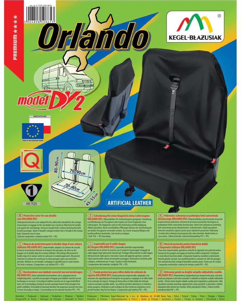 Housse de siège ORLANDO est imperméable et résistante à l'huile. Le produit est fait de l'éco-cuir qui est un matériau imperméable, solide, difficile à percer. Grâce à sa structure convenable elle adhère bien au siège. La surface du matériau est si grande qu'elle protégera l'ensemble de la banquette - non seulement le dossier et le siège mais aussi les parties latérales, le bas du canapé et les appuis-tête. La housse-siège est conçue comme universelle. Grâce au couleur noir, il s'adapte à l'intérieur de chaque voiture et il est pratique pour l'utilisation quotidienne. La grande surface de la matière, sa couleur noire et surtout ses propriétés spéciales permettent l'utilisation de longue durée. Le produit écologique, facile à nettoyer, à installer et à enlever. Elle ne prend pas beaucoup de place donc vous pouvez toujours l'emporter avec vous.