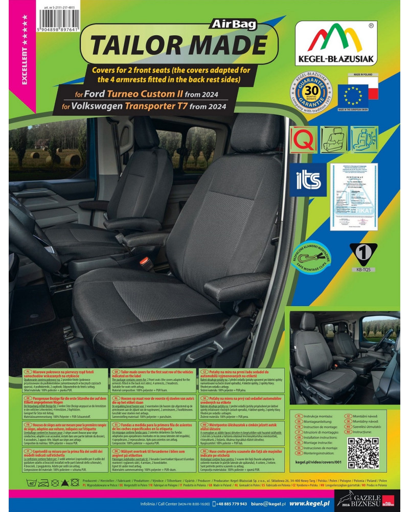 Housses de sièges sur mesure TAILOR MADE sont fabriquées à partir de matériaux d'ameublement de haute qualité (à l'avant et à l'arrière) qui, combinés au soin de finir même les plus petits détails, satisferont les clients les plus exigeants. Grâce à la construction appropriée, les housses auto s'adaptent parfaitement aux sièges et la stratification à l'intérieur du matériau avec de la mousse PUR ignifuge les empêche de glisser.