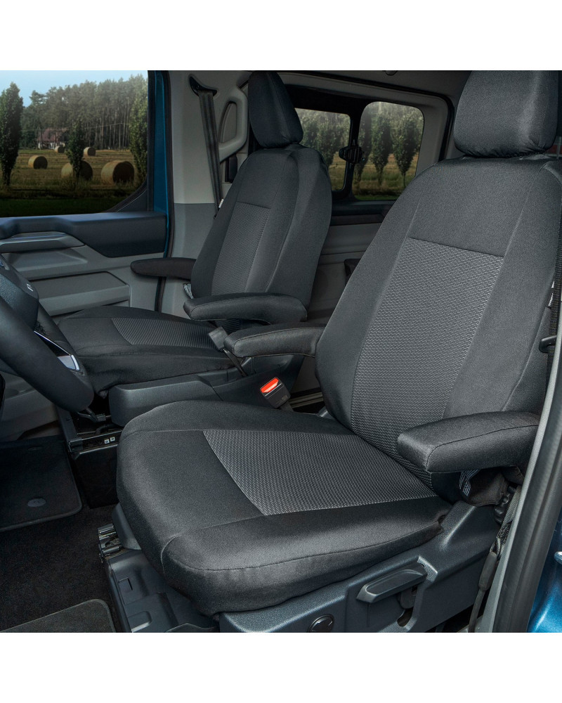 2 sièges avant (housse pour siège conducteur, adaptée à un accoudoir, instalé dans une partie latérale du dossier)