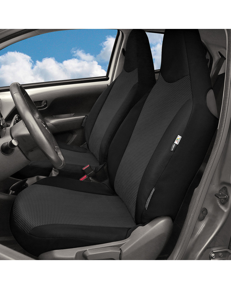 Les housses sur mesure ARES sont fabriquées en tissu d'ameublement de haute qualité (et le devant et le dos) ce que, associé à la finition très soignée de tous les moindres détails, satisfera les clients les plus exigeants. Grâce à leur construction tridimensionnelle faite sur mesure elles moulent parfaitement les sièges. Le tissu adhère entièrement à la tapisserie en guise d'elle. La doublure en mousse difficilement inflammable PUR contribue également à l'adhésion du tissu protégeant la housse de glissement. La qualité de fabrication et la sécurité d'utilisation sont confirmées par le certificat et les recherches réalisés par l'Institut de Transport Automobile.