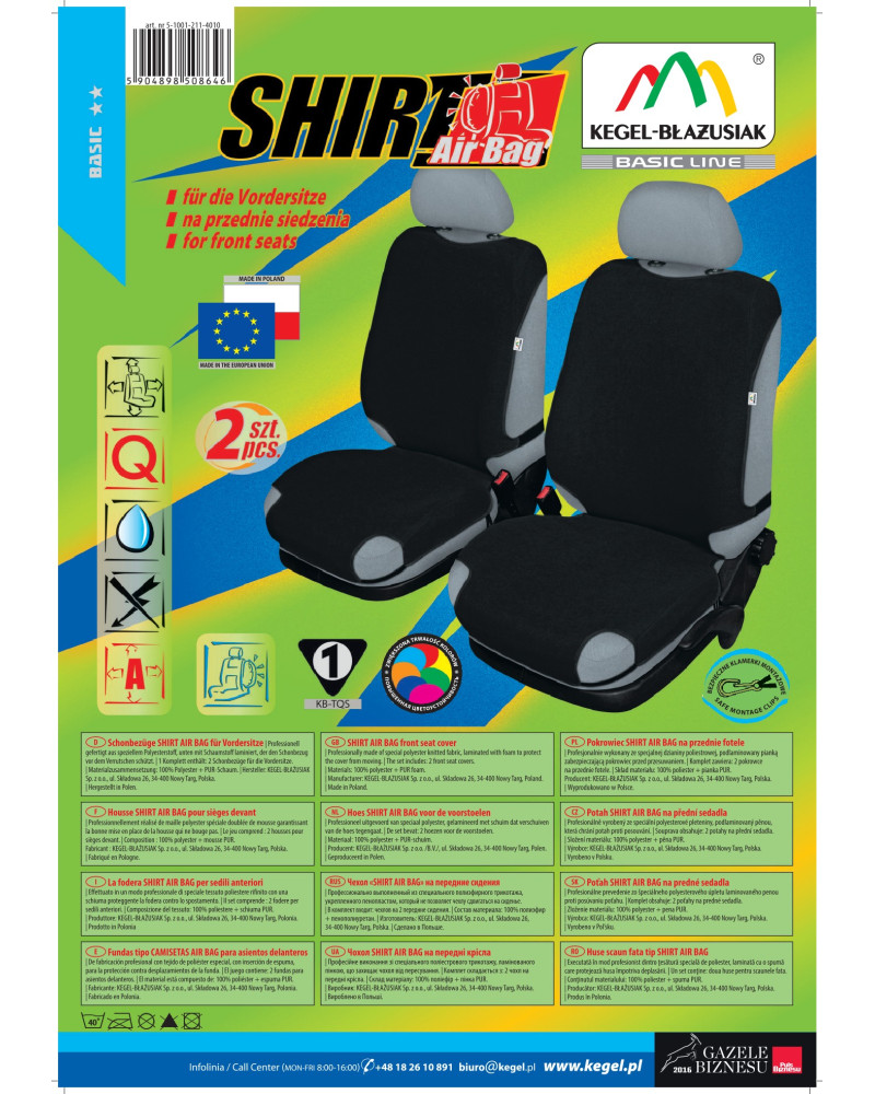 Les housses de siège SHIRT AIRBAG II sont une nouvelle version de notre produit populaire T-SHIRT housse de siège. Le produit de la série BASIC LINE, dont la devise est - très bonne qualité à un prix abordable. Fabriqué à partir de matières premières de bonne qualité. Les T-SHIRT housses de siège de cette marque répondent à toutes les normes de solidité et de qualité. Leur fabrication soignée à partir de bons matériaux est parfaite pour l'industrie automobile.