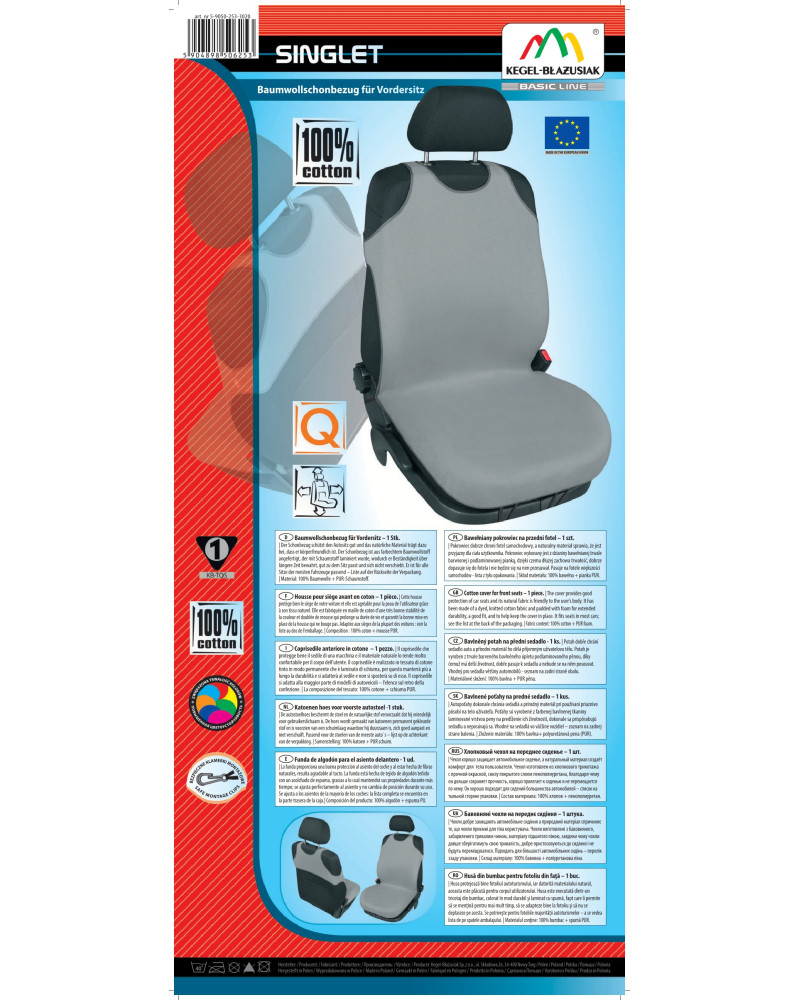 Les housses de siège voiture SINGLET sont fabriquées dans un matériau naturel de haute qualité (100% coton), qui, associé à la finition soignée des moindres détails, satisfera les clients les plus exigeants. Grâce à une construction appropriée, les housses adhèrent bien aux sièges, et le laminage à l'intérieur de tout le matériau avec de la mousse PUR les empêche de bouger. Les housses de siège voiture SINGLET sont de taille universelle et s'adaptent à presque tous les sièges de voiture. Elles sont très faciles à enfiler et à retirer. Elles sont aussi très faciles à nettoyer, attendues par les clients depuis des années. Elles protègent et en même temps, de manière très visible, changent les sièges de voiture, donnant à la voiture un caractère unique.