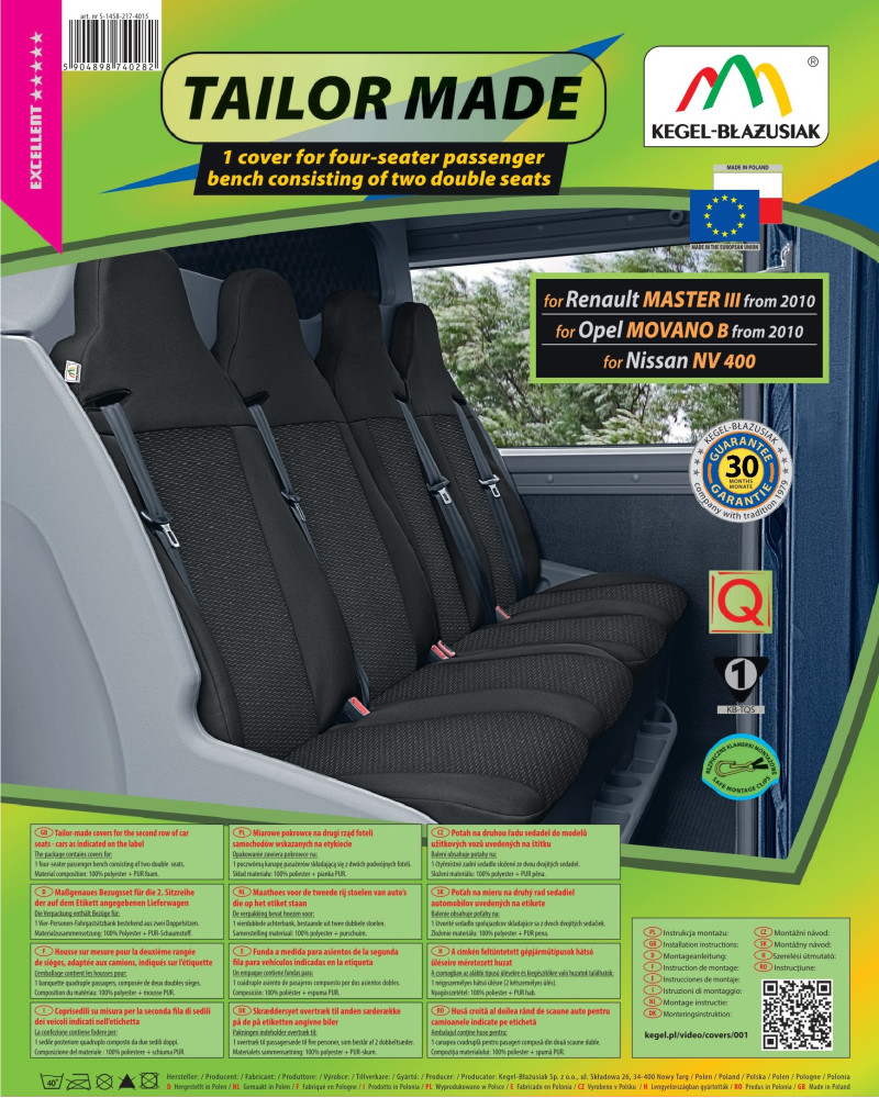 Housses de sièges sur mesure TAILOR MADE sont fabriquées à partir de matériaux d'ameublement de haute qualité (à l'avant et à l'arrière) qui, combinés au soin de finir même les plus petits détails, satisferont les clients les plus exigeants. Grâce à la construction appropriée, les housses auto s'adaptent parfaitement aux sièges et la stratification à l'intérieur du matériau avec de la mousse PUR ignifuge les empêche de glisser.