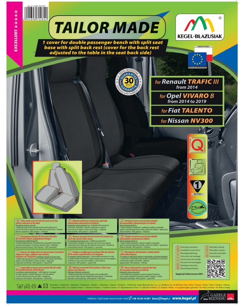 Housses de sièges sur mesure TAILOR MADE sont fabriquées à partir de matériaux d'ameublement de haute qualité (à l'avant et à l'arrière) qui, combinés au soin de finir même les plus petits détails, satisferont les clients les plus exigeants. Grâce à la construction appropriée, les housses auto s'adaptent parfaitement aux sièges et la stratification à l'intérieur du matériau avec de la mousse PUR ignifuge les empêche de glisser.