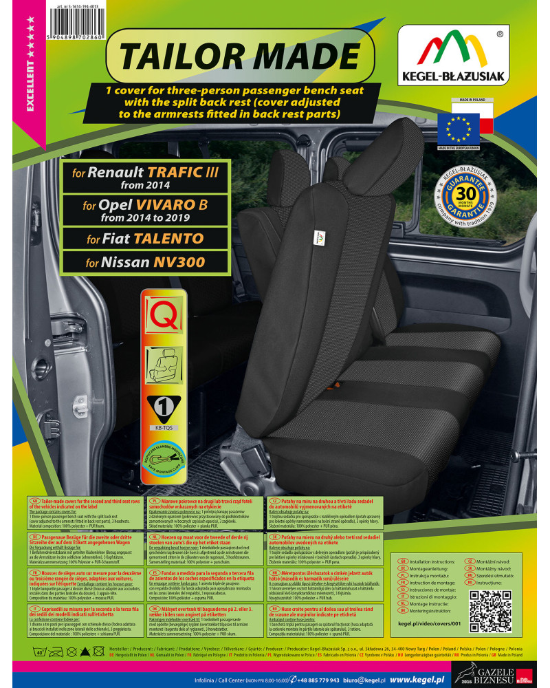La garantie de 30 mois vous assure que vous achetez un produit de la plus haute qualité. Leur fabrication réalisée avec des matériaux de haute qualité garantit une longue durée de vie. L'offre s'adresse aux propriétaires d'une voiture qui souhaitent prendre soin de l'intérieur de leur véhicule et lui donner du style et de l'élégance Les housses de siège auto TAILORE MADE protègent très bien le revêtement d'origine de la voiture contre l'essuyage et les dommages, et le style classique de bon goût évoque des impressions esthétiques positives. Couleur tamisée - le noir avec une texture grise délicate à l'intérieur de la housse s'intègre parfaitement à l'intérieur de n'importe quelle voiture. Grâce à la structure spatiale appropriée et à l'adaptation spécifique à votre voiture, les housses auto s'adaptent parfaitement aux sièges.Le matériau adhère parfaitement aux sièges, remplaçant leur garniture originelle. L'ensemble est équipé de boucles en plastique spéciales et les accessoires sont cousus dans le matériau, ce qui permet de mettre la housse sans enlever les appuie-têtes et de faire des ouvertures supplémentaires.