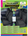 Housses de sièges sur mesure TAILOR MADE sont fabriquées à partir de matériaux d'ameublement de haute qualité (à l'avant et à l'arrière) qui, combinés au soin de finir même les plus petits détails, satisferont les clients les plus exigeants. Grâce à la construction appropriée, les housses auto s'adaptent parfaitement aux sièges et la stratification à l'intérieur du matériau avec de la mousse PUR ignifuge les empêche de glisser Les housses ont des ouvertures aux finitions élégantes pour les appuie-têtes, toutes les ceintures de sécurité (y compris la troisième et celle du milieu) et les serrures des ceintures. Lors de la fabrication des housses, un système de division de la banquette arrière a été utilisé, ce qui permet de la plier, sans avoir besoin de détacher la housse.