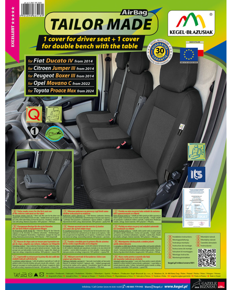 Housses de sièges sur mesure TAILOR MADE sont fabriquées à partir de matériaux d'ameublement de haute qualité (à l'avant et à l'arrière) qui, combinés au soin de finir même les plus petits détails, satisferont les clients les plus exigeants. Grâce à la construction appropriée, les housses auto s'adaptent parfaitement aux sièges et la stratification à l'intérieur du matériau avec de la mousse PUR ignifuge les empêche de glisser.