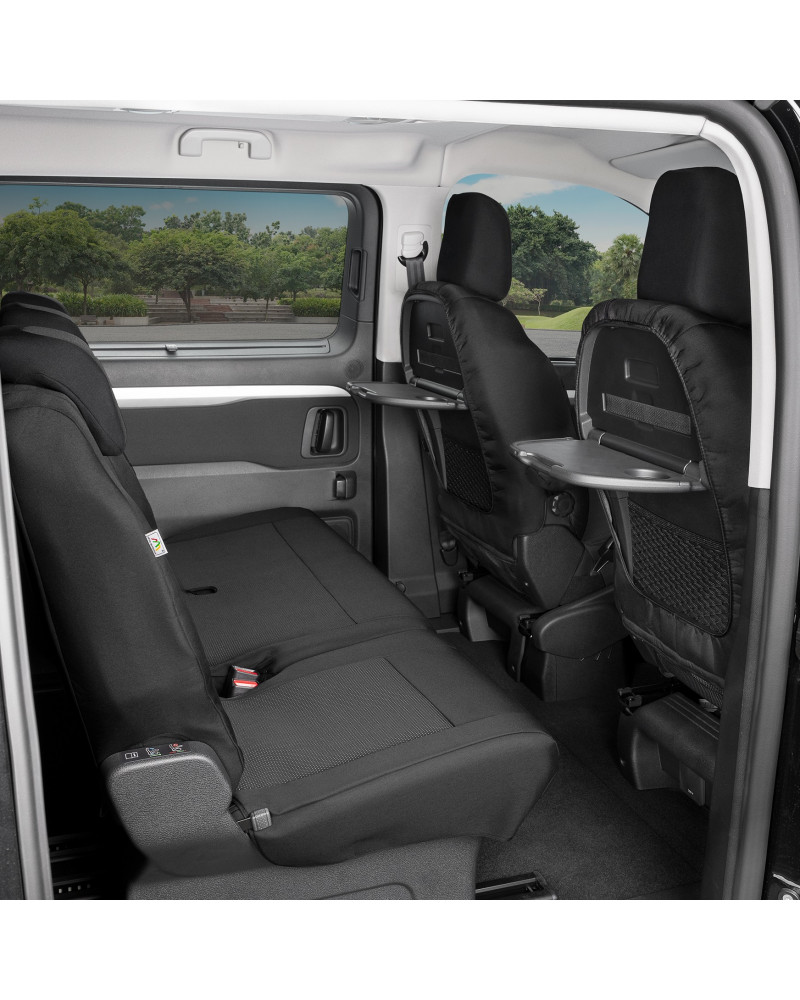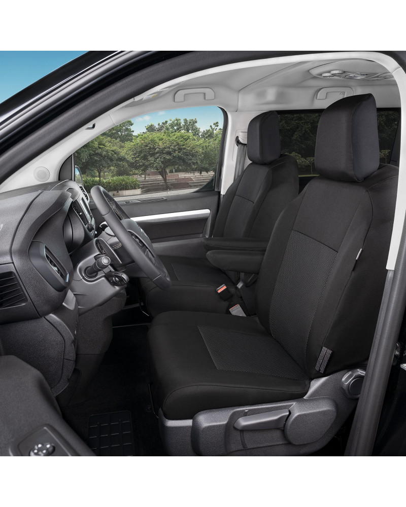 -2 housses pour sièges avant (housses adaptées à des accoudoirs, instalés dans des parties latérales du dossier, housse pour siège passager équipée d'une poche)