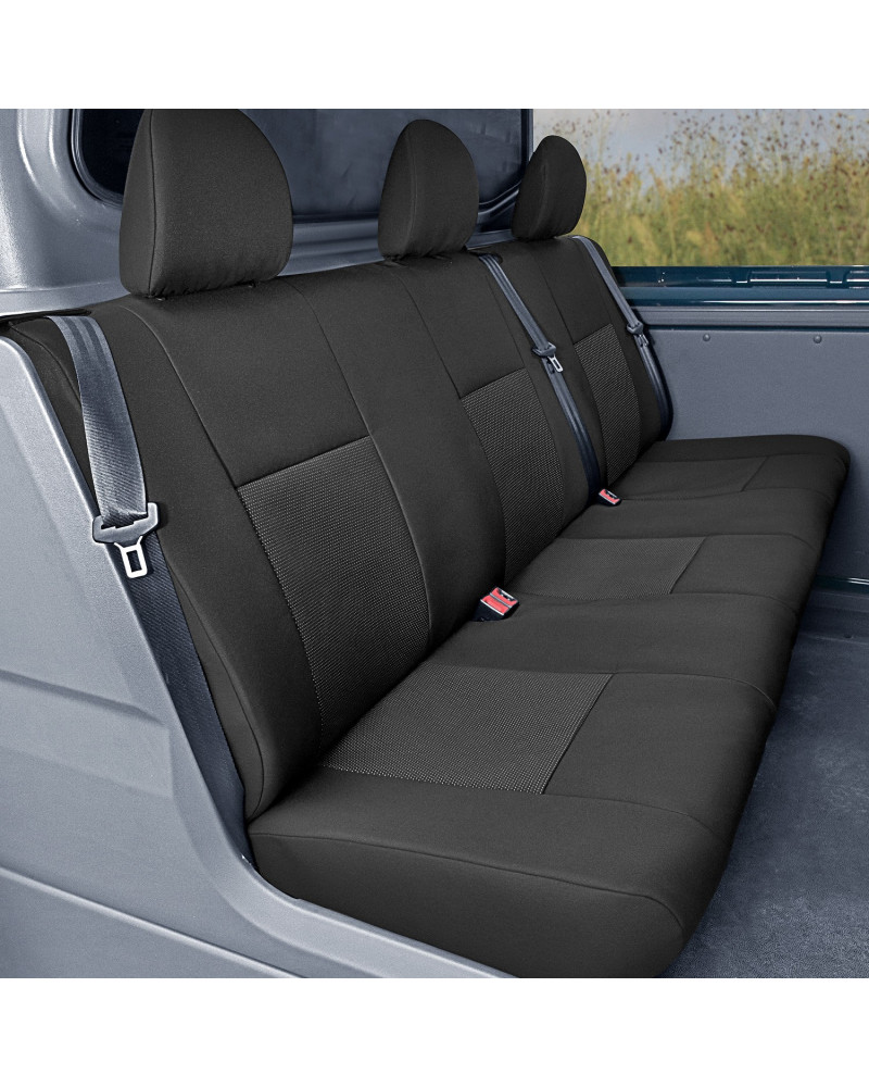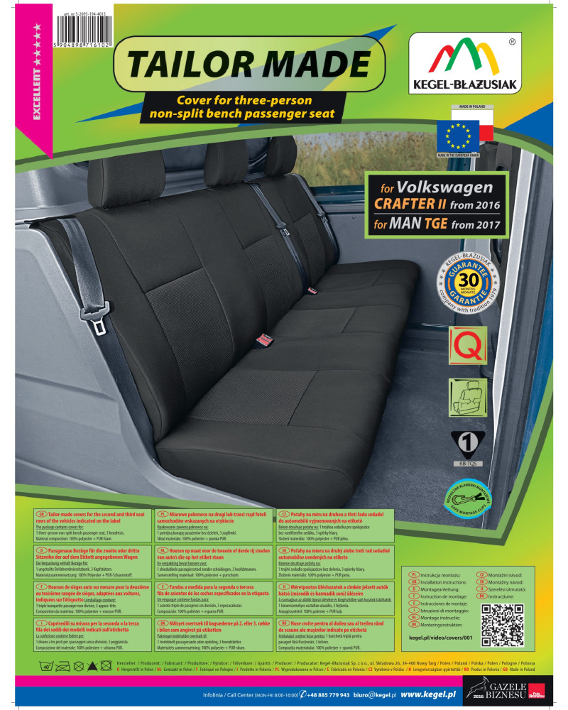 La garantie de 30 mois vous assure que vous achetez un produit de la plus haute qualité. Leur fabrication réalisée avec des matériaux de haute qualité garantit une longue durée de vie. L'offre s'adresse aux propriétaires d'une voiture qui souhaitent prendre soin de l'intérieur de leur véhicule et lui donner du style et de l'élégance Les housses de siège auto TAILORE MADE protègent très bien le revêtement d'origine de la voiture contre l'essuyage et les dommages, et le style classique de bon goût évoque des impressions esthétiques positives. Couleur tamisée - le noir avec une texture grise délicate à l'intérieur de la housse s'intègre parfaitement à l'intérieur de n'importe quelle voiture. Grâce à la structure spatiale appropriée et à l'adaptation spécifique à votre voiture, les housses auto s'adaptent parfaitement aux sièges.Le matériau adhère parfaitement aux sièges, remplaçant leur garniture originelle. L'ensemble est équipé de boucles en plastique spéciales et les accessoires sont cousus dans le matériau, ce qui permet de mettre la housse sans enlever les appuie-têtes et de faire des ouvertures supplémentaires.