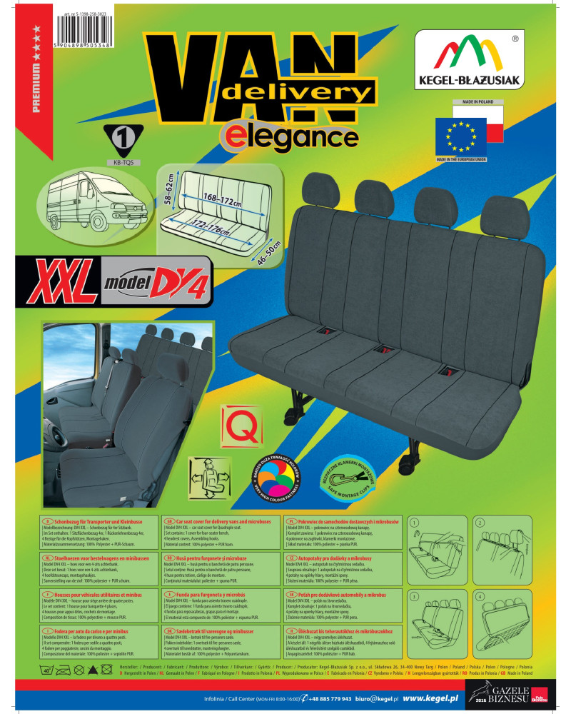 Le produit de la société Kegel-Błażusiak, bien connue et très appréciée dans l'industrie des housses de voiture et des vêtements de travail. Fabriqué en Pologne, principalement à partir de matières premières polonaises, avec toutes les normes de qualité de l'Union européenne. Des années d'expérience et un assortiment de plus en plus parfait font que les housses de cette marque peuvent être décrites comme les meilleures en Pologne.