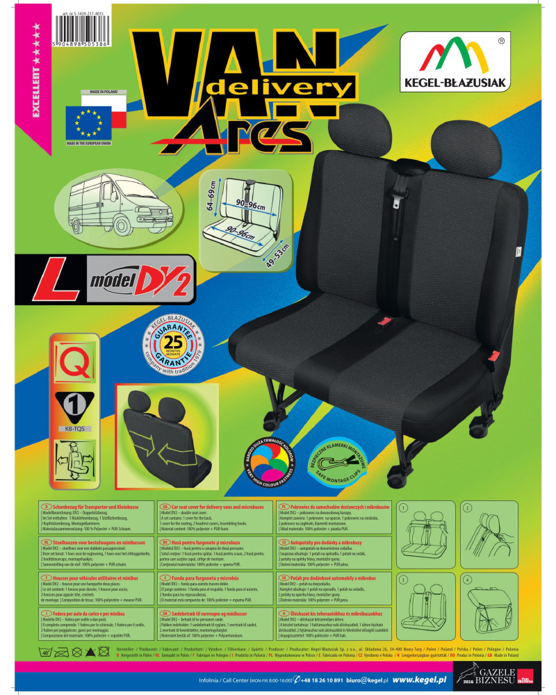 Produit de la célèbre société Kegel-Błażusiak. Le plus grand fabricant et exportateur de housses de voiture et de vêtements de travail. Fabriqué en Pologne, principalement à partir de matières premières polonaises, avec toutes les normes de qualité de l'Union européenne.