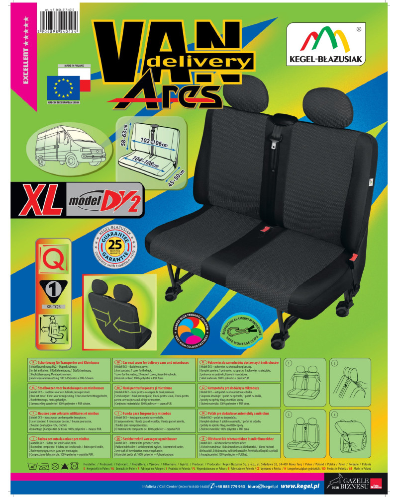 Produit de la célèbre société Kegel-Błażusiak. Le plus grand fabricant et exportateur de housses de voiture et de vêtements de travail. Fabriqué en Pologne, principalement à partir de matières premières polonaises, avec toutes les normes de qualité de l'Union européenne.