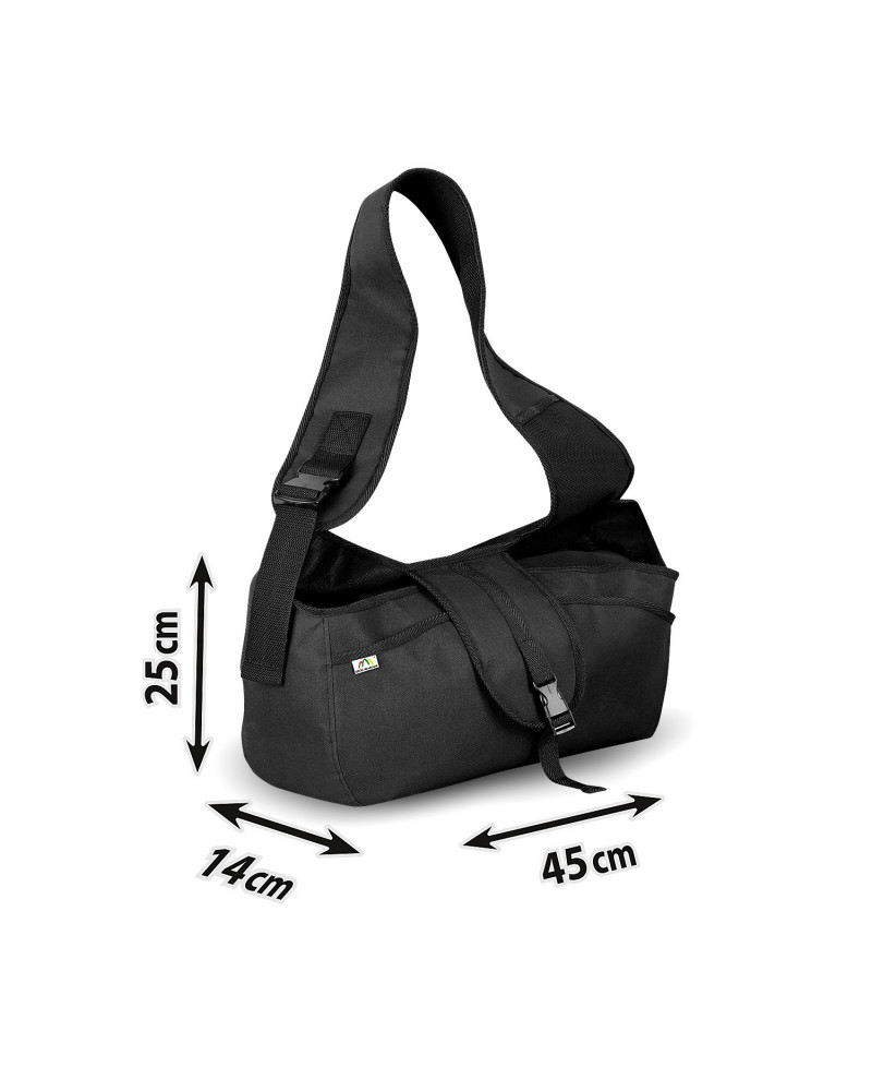 La capacitéde charge du sac jusqu'à 10 kg. Avec deux mini-laisses à l'intérieur du sac et un rabat à fermeture réglable pour protéger les chiens de sauter. Sac confortable et pratique pour le transport des petits chiens. Il assure le confort du chien et de son gardien. Il assure au chien un espace sûr grâce à un fond solide à l'intérieur du sac, et au gardien - grâce à sa structure ergonomique avec une bandoulière large et réglable - il permet de porter les chiens sans pression, même pendant de longues promenades.