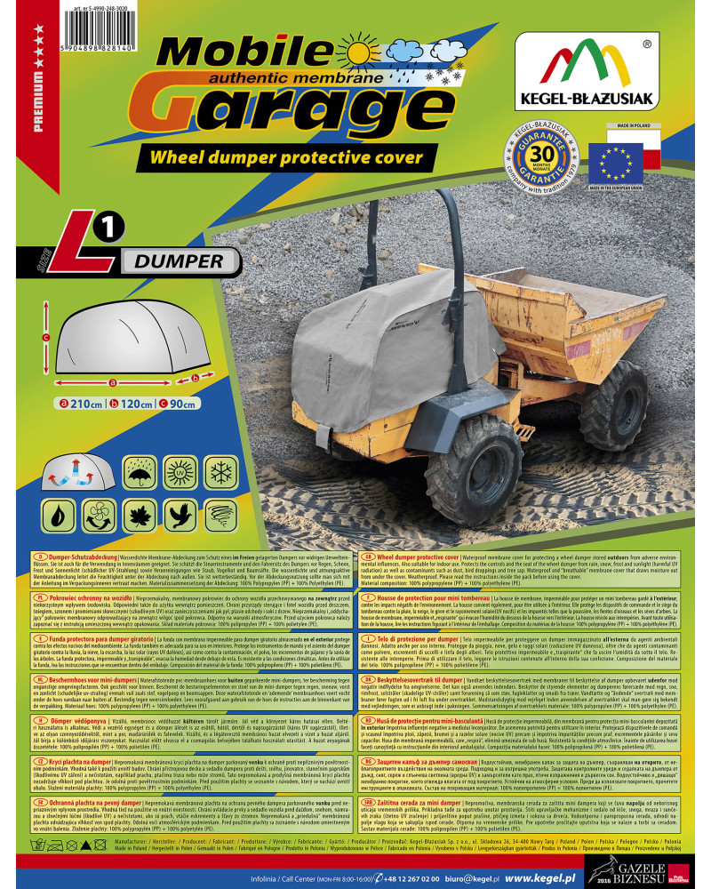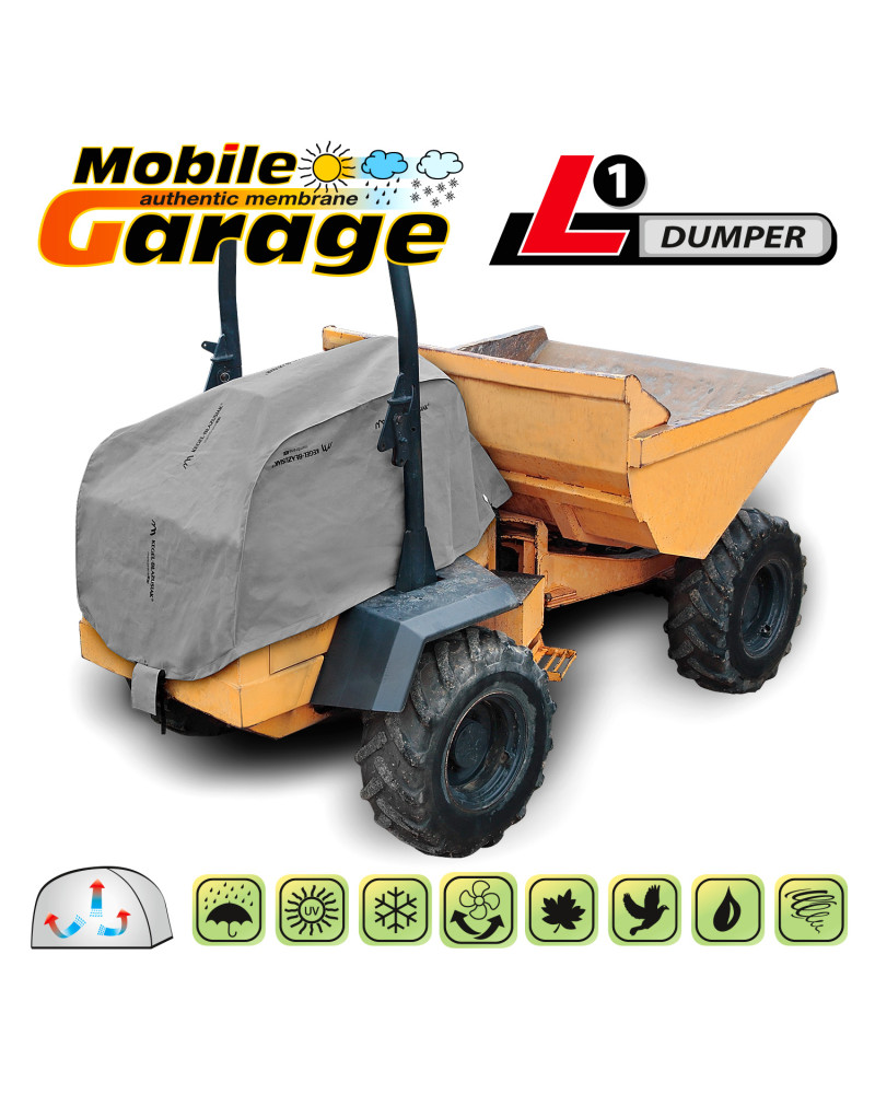 La housse de membrane, imperméable pour protéger un mini tombereau gardé à l'extérieur, contre les impacts négatifs de l'environnement. La housse convient également, pour être utilisée à l’intérieur. Elle protège les dispositifs de commande et le siège du tombereau contre la pluie, la neige, le givre et le rayonnement solaire(UV nocifs) et les impuretés telles que la poussière, les fientes d'oiseaux et les sèves d'arbres. La housse de membrane, imperméable et "respirante" qui évacue l'humidité du dessous de la housse vers l’extérieur. La housse résiste aux intempéries. Avant toute utilisation de la housse, lire les instructions figurant à l'intérieur de l’emballage.