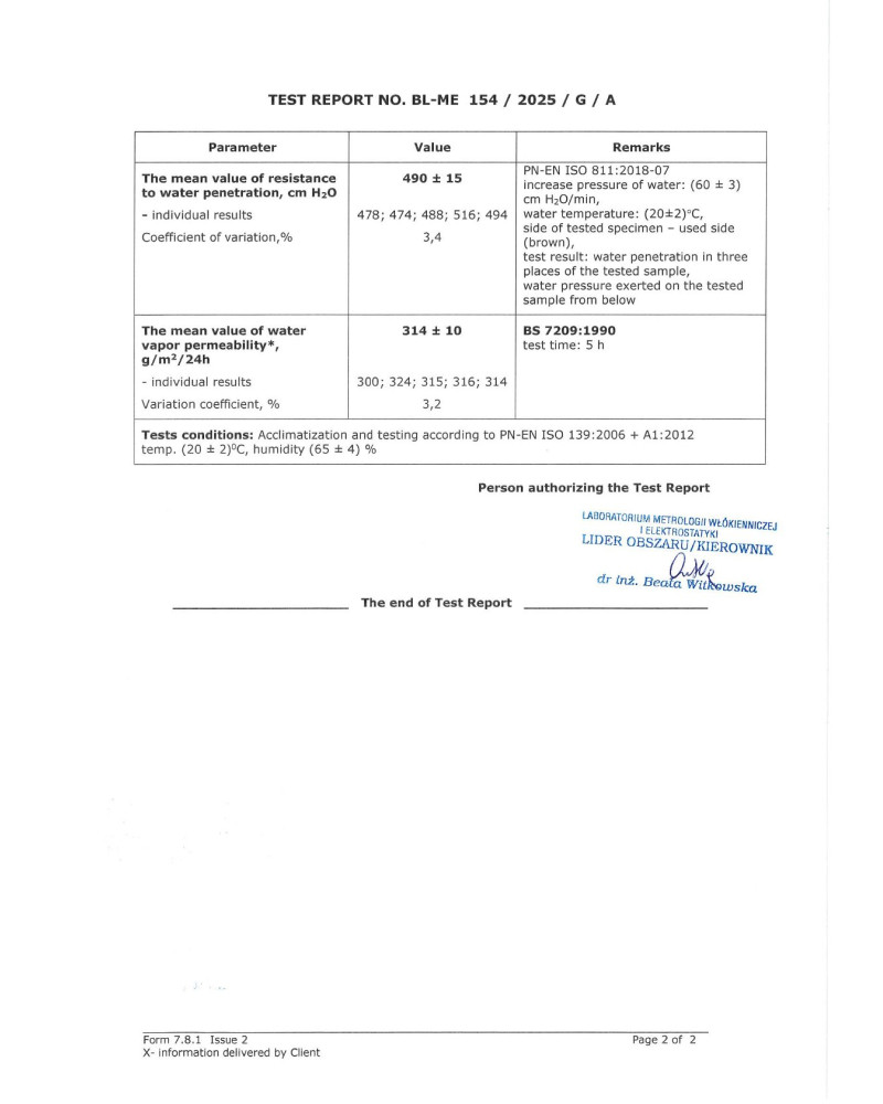 -fait d'un matériau hydrofuge et perméable à la vapeur qui assure l'évaporation de l'humidité s'accumulant à l'intérieur