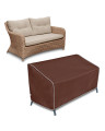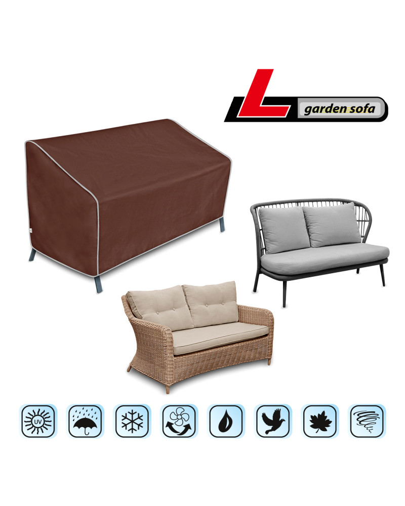 La housse de protection pour canapé de jardin, gardé à l’extérieur, utilisable tout au long de l'année contre les impacts négatifs de l'environnement. Grâce à sa conception spéciale, l'eau, lors de la pluie, s'écoule par dessus de la housse sans y pénétrer. Elle protège le canapé de jardin contre la pluie, la neige, le givre et le rayonnement solaire(UV nocifs) et les impuretés telles que la poussière, les fientes d'oiseaux et les sèves d'arbres. La housse réduit la corrosion et le vieillissement des éléments en plastique ou en bois, elle protège contre la décoloration et le ternissement du vernis et des éléments chromés. La housse est entièrement résistante à toutes les conditions atmosphériques. Facile à mettre et à enlever. Des fixations supplémentaires empêchent que la housse ne soit enlevée par le vent. La housse convient également, pour être utilisée à l’intérieur.