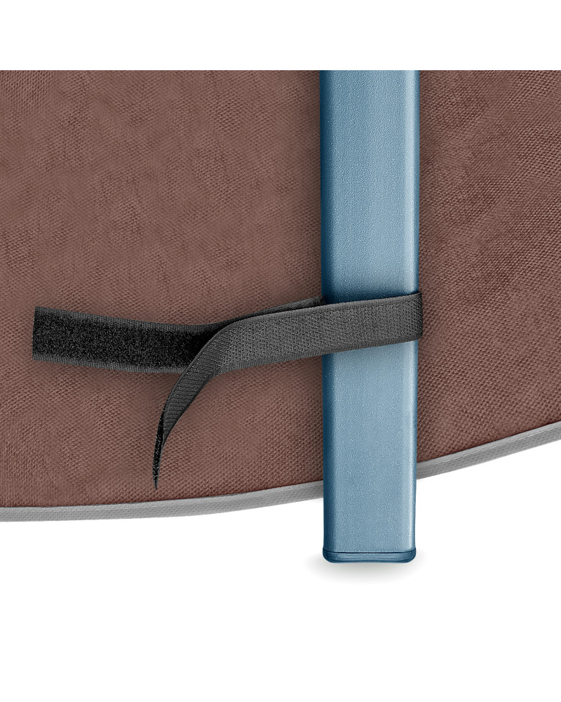 Mettre la housse, le côté avec des finitions de couture cendrées vers l'extérieur, puis fixer la housse aux pieds du canapé à l'aide de bandes « Velcro » cousues sur la face intérieure du bas de la housse. Ne pas utiliser la housse lors du transport du canapé sur des porte-bagages extérieurs et non couverts.
