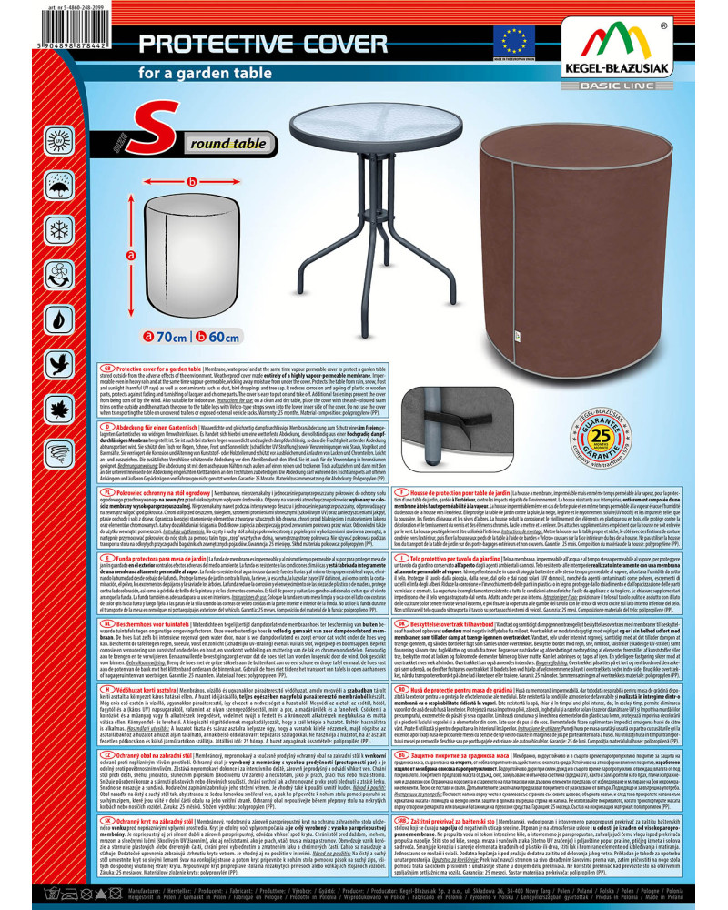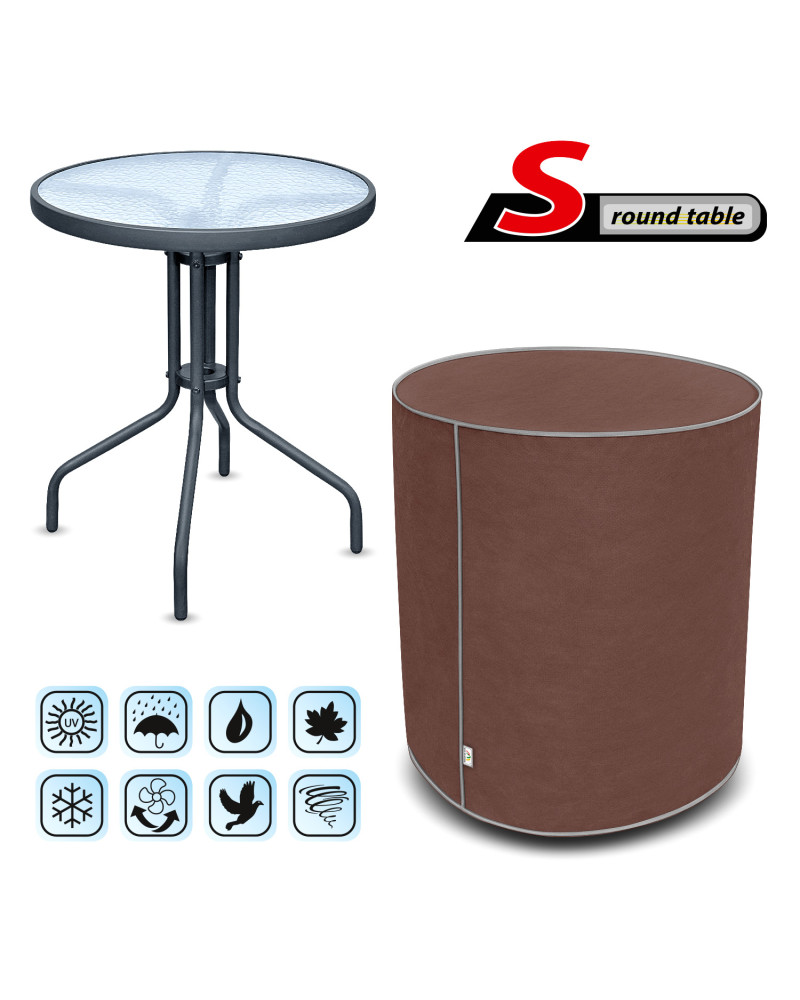 La housse de protection pour table de jardin, gardée à l’extérieur, utilisable tout au long de l'année, contre les impacts négatifs de l'environnement. Grâce à sa conception spéciale, l'eau, lors de la pluie, s'écoule par dessus de la housse sans y pénétrer. Elle protège la table de jardin contre la pluie, la neige, le givre et le rayonnement solaire(UV nocifs) et les impuretés telles que la poussière, les fientes d'oiseaux et les sèves d'arbres. La housse réduit la corrosion et le vieillissement des éléments en plastique ou en bois, elle protège contre la décoloration et le ternissement du vernis et des éléments chromés. La housse est entièrement résistante à toutes les conditions atmosphériques. Facile à mettre et à enlever. Des fixations supplémentaires empêchent que la housse ne soit enlevée par le vent. La housse convient également, pour être utilisée à l’intérieur.