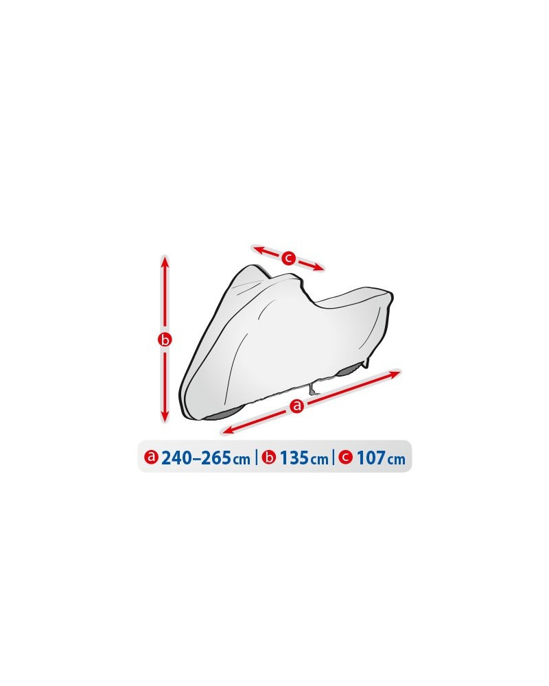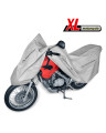 La housse de membrane, imperméable mais en même temps perméable à la vapeur pour la protection d’une motocyclette à combustion interne ou électrique contre les impacts négatifs de l'environnement. La housse résiste aux intempéries, et elle est entièrement composée d'une membrane à haute perméabilité à la vapeur. Imperméable même en cas de forte pluie et en même temps perméable à la vapeur, évacuant l'humidité du dessous de la housse vers l'extérieur. Elle protège contre la pluie, la neige, le givre et le rayonnement solaire(UV nocifs) et les impuretés telles que la poussière, les fientes d'oiseaux et les sèves d'arbres. La housse réduit la corrosion et le vieillissement des éléments en plastique, elle protège contre la décoloration et le ternissement du vernis et des éléments chromés. Elle convient pour le stockage extérieur à long terme ou à court terme d'une motocyclette à combustion interne ou pour le stockage à court terme d'une motocyclette électrique. Elle convient également, pour être utilisée à l’intérieur. Un cordon de serrage et des attaches supplémentaires sous la moto empêchent que la housse ne soit enlevée par le vent. Il y a des trous faits dans la housse pour permettre d'attacher la moto couverte de la housse, par la roue avant à l'aide d'un antivol ou d'une chaîne.