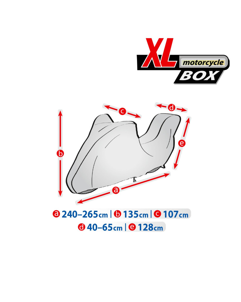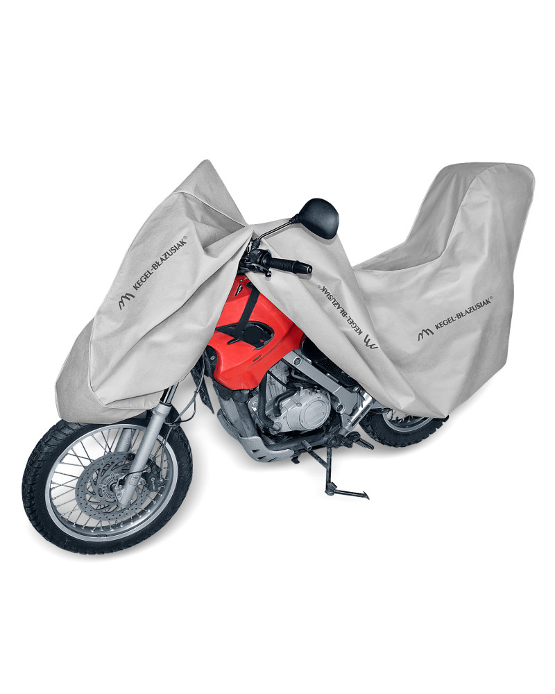 La housse de membrane, imperméable mais en même temps perméable à la vapeur pour la protection d’une motocyclette à combustion interne ou électrique contre les impacts négatifs de l'environnement. La housse résiste aux intempéries, et elle est entièrement composée d'une membrane à haute perméabilité à la vapeur. Imperméable même en cas de forte pluie et en même temps perméable à la vapeur, évacuant l'humidité du dessous de la housse vers l'extérieur. Elle protège contre la pluie, la neige, le givre et le rayonnement solaire(UV nocifs) et les impuretés telles que la poussière, les fientes d'oiseaux et les sèves d'arbres. La housse réduit la corrosion et le vieillissement des éléments en plastique, elle protège contre la décoloration et le ternissement du vernis et des éléments chromés. Elle convient pour le stockage extérieur à long terme ou à court terme d'une motocyclette à combustion interne ou pour le stockage à court terme d'une motocyclette électrique. Elle convient également, pour être utilisée à l’intérieur. Un cordon de serrage et des attaches supplémentaires sous la moto empêchent que la housse ne soit enlevée par le vent. Il y a des trous faits dans la housse pour permettre d'attacher la moto couverte de la housse, par la roue avant à l'aide d'un antivol ou d'une chaîne.