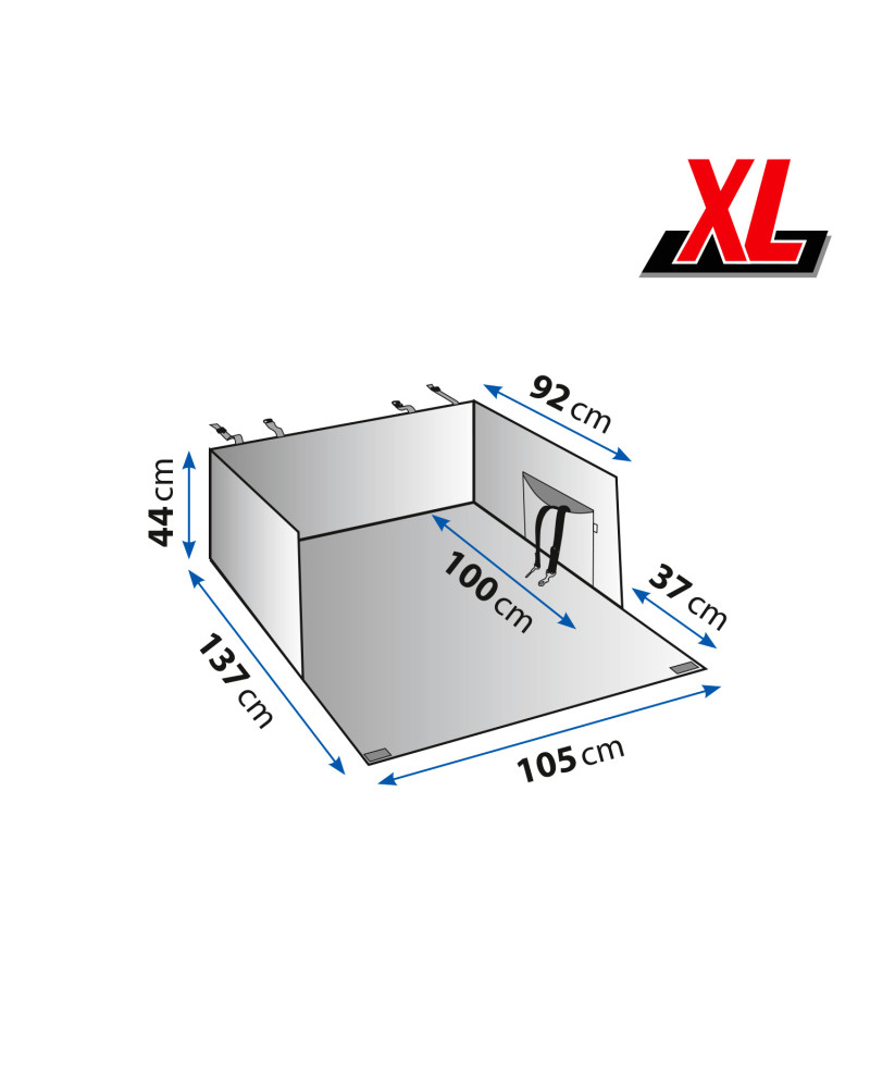 -Adaptation – grâce à une grande surface, des parties latérales plus hautes et une bonne adhésion, la housse est bien ajustée à l'intérieur et couvre le coffre presque entièrement.