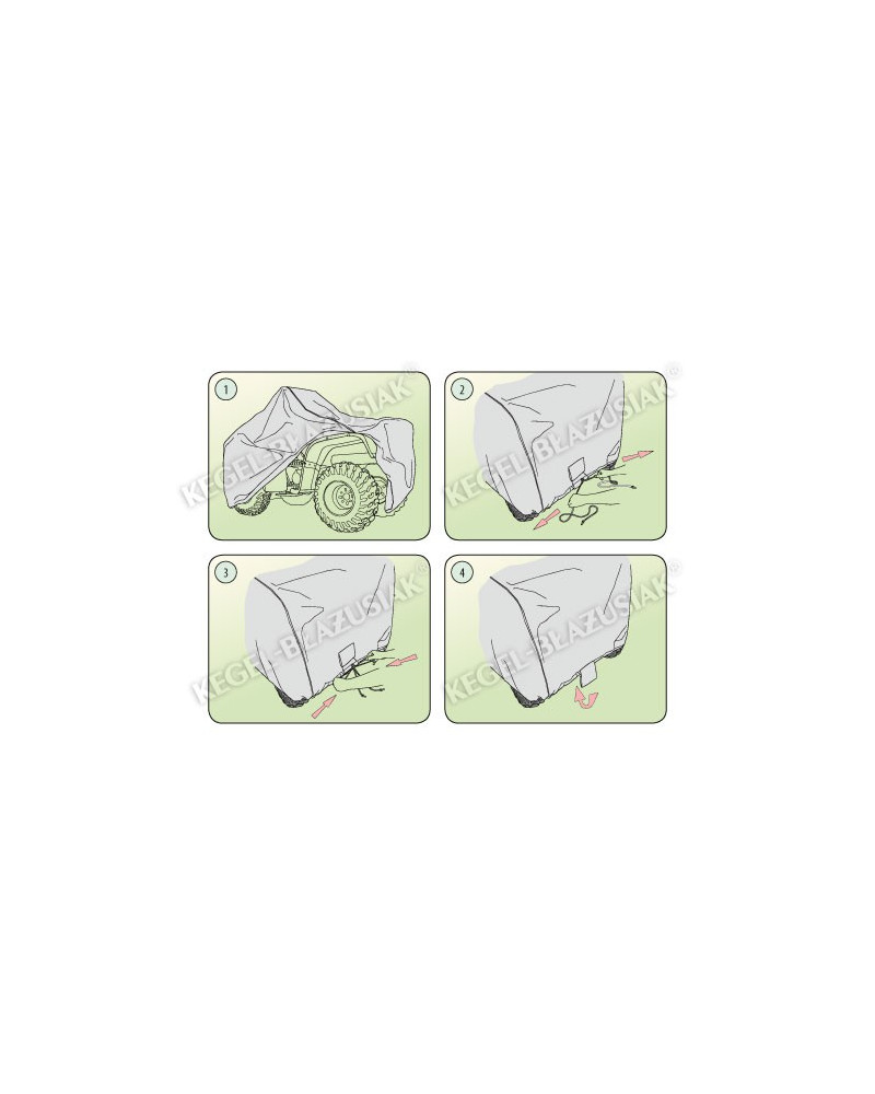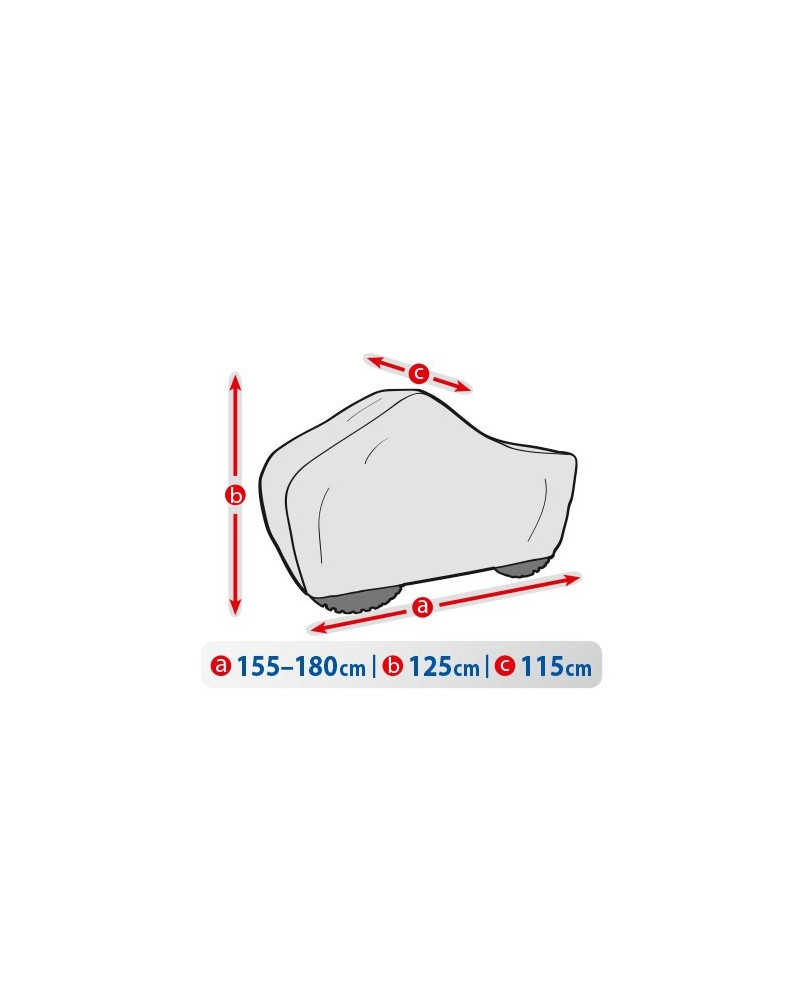 Une housse de quad pour les amateurs des quatre-roues., hydrofuge et perméable à la vapeur. Le matériau est presque entièrement étanche tout en permettant l'évaporation de l'humidité s'accumulant à l'intérieur de la housse, protégeant ainsi de l'apparition de la rouille. La housse offre la protection du quad entier, avec sa partie inférieure, contre les effets destructifs du milieu. Elle résiste à l'action des rayons UV. Fixée à l'aide de la corde élastique autour du quad entier, la housse protège même en cas de vent élevé. Grâce à une variété des versions de dimensions différentes vous trouverez toujours une housse qui sera bien ajustée à votre quad. La garantie de 25 mois dont sont couvertes les housses vous donne l'assurance d'avoir choisi un article de haute qualité.